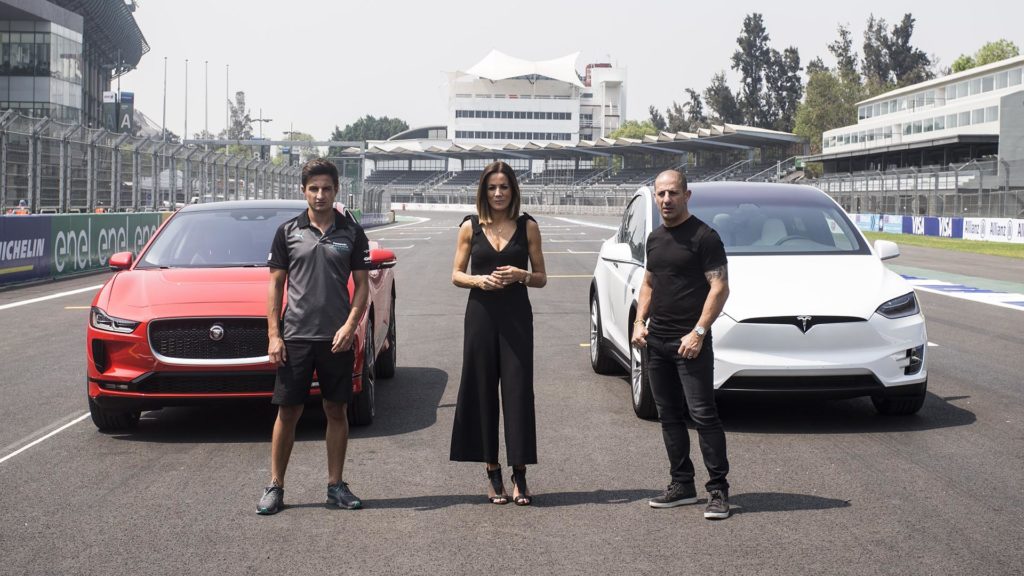 A Formula-E mexikói nagydíjának helyszínén tartott versenyre speciális játékszabályokat állítottak fel: álló helyzetből fel kell gyorsulniuk 60 mérföld/órára, majd ismét állóra fékezni. A Jaguar kormányához Mitch Evans, a Jaguar-csapat 23 éves Formula-E pilótája, a Tesláéhoz pedig Tony Kanaan 43 éves IndyCar-bajnok ült, és bár az egyenesben gyorsuláshoz nincs szükség autóversenyzőkre, a villámgyors reakcióidőhöz annál inkább.