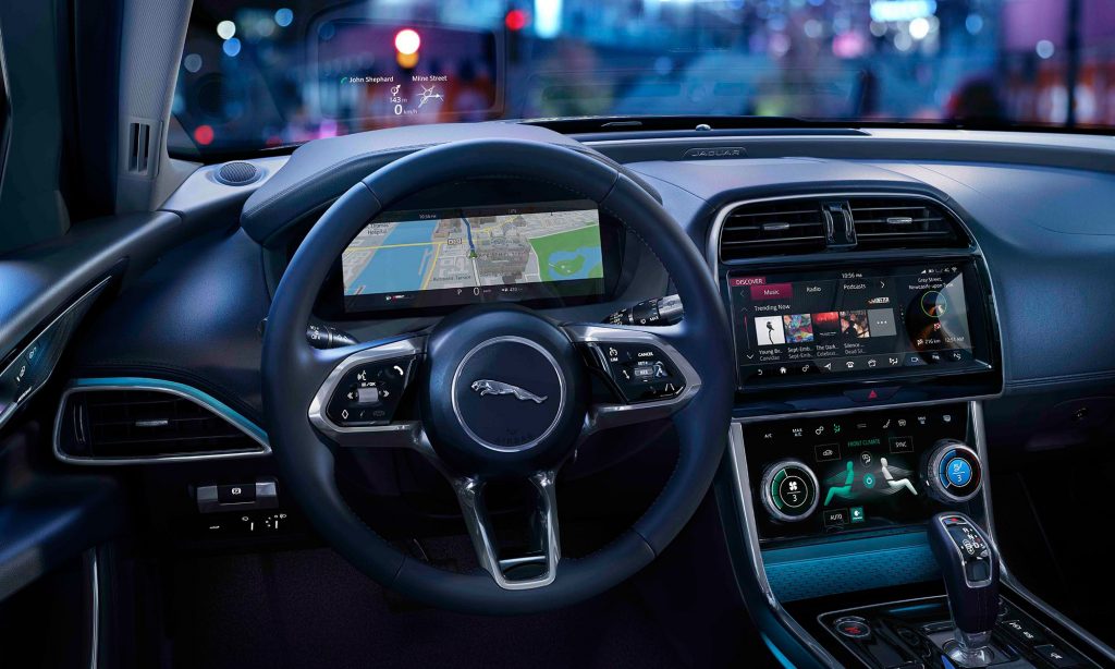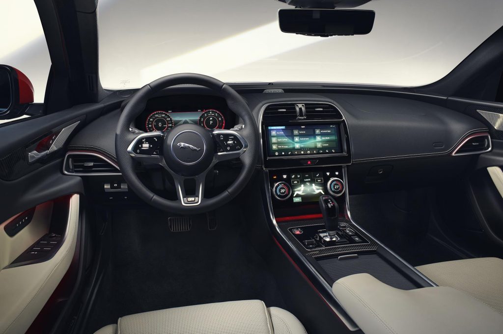 Új a kormánykerék és mögötte a 12,3 colos színes képernyős műszeregység, és úgy tűnik, hogy a Jaguar egyre több típusában cseréli le a modernnek szánt forgótárcsás váltógombot az F-Type hagyományos váltókarjára. Jobb minőségű anyagokat is ígérnek, újdonság még a vezeték nélküli mobiltöltés és a kamera képét mutató belső visszapillantó tükör.