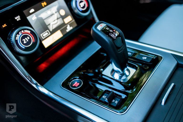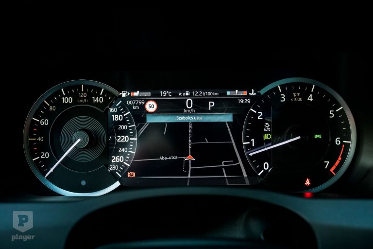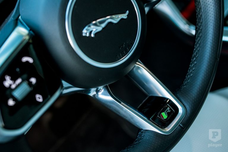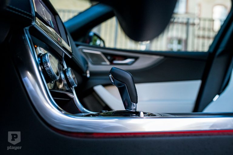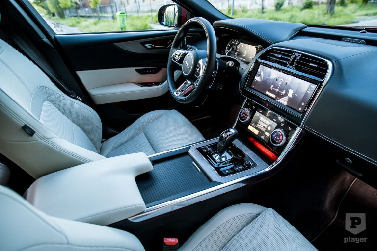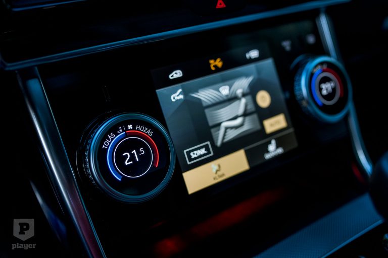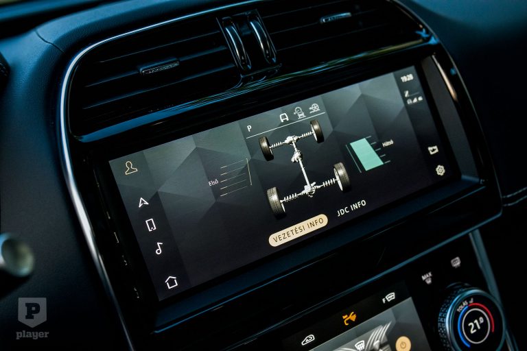 Szerencsére a jaguaros férfinek már nem egy tárcsát kell tekernie, hanem váltókarral választhat fokozatot – ez is a ráncfelvarrásnak köszönhető –, miközben egy formailag elég egyszerű műszerfalról tájékozódhat és vezérelheti a fedélzeti rendszereket (az „egyszerű” kifejezés a Tesláktól távoli univerzumban értelmezendő). Talán épp a típus korának köszönhető, hogy a klímát külön panelről állíthatjuk – kedvencem a tolás és húzás felirat –, ennek ma már nem szokás ekkora felületet biztosítani.