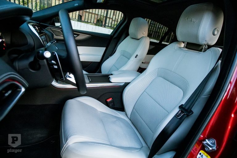 Amennyire szörnyen közhelyes a sportosan elegáns jelző az XE-re, annyira illik is rá. Kívülről. Belül ugyanis – a tesztautó vonzóságát fokozandó, világos bőrbe húzott – üléseiről nem a sportosság jut eszünkbe, a magasságukról főleg nem. Első beszálláskor azt gondoljuk, egy mozdulattal lejjebb állítjuk az ülőlapot, aztán viszont kiderül, hogy már a legalacsonyabb pozícióban van. Ez nemcsak a vezetési élményen csorbít – ha magasan akarnánk ülni, E-Pace-t vennénk, nem XE-t –, hanem így a terünk is kevesebb. Az erősen döntött szélvédő ugyanis jót tesz a sziluettnek, de rosszat a helykínálatnak. Legalább következetesek voltak a tervezők, mert hátul sincs sok tér, a Jaguar ideális utasai nem túl magasak, és kedvelik egymás közelségét.