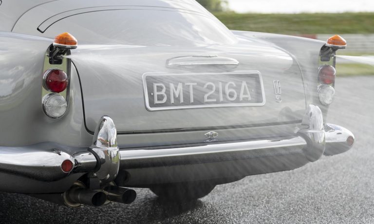 A legjobb az egészben az, hogy a James Bond-filmek effektjeiért felelős, Oscar-díjas Chris Corbould közreműködésével a spéci kütyüket is megkapja a DB5. A filmes autók a forgatáson talán egyszer-kétszer sütötték el ezeket az extrákat, de