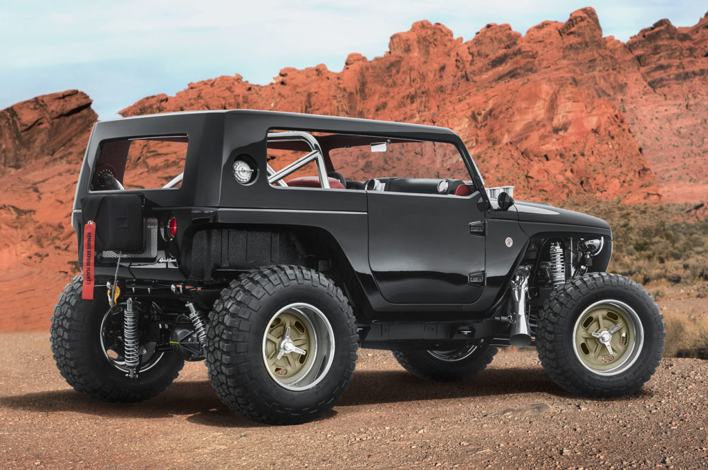 Egy régi Jeepnek tűnik, de nagyon nem az, ez a Jeepek Singer Porschéje. Fogtak egy ezredfordulós példányt, és az eredeti Jeep kaszniját húzták rá. Hogy teljes legyen az élmény, egy 5,7 literes Hemi V8-as dolgozik benne, 380 lóerővel, te pedig egy hatfokozatú kézi váltót kapcsolgathatsz. Ugye, milyen kár, hogy ez is csak egy tanulmányautó?