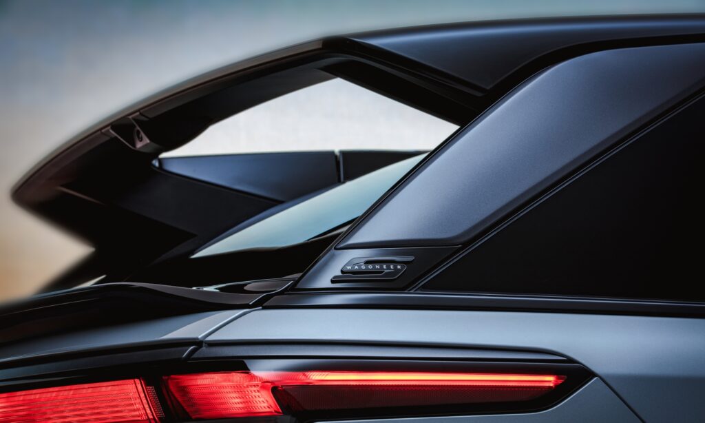 Hétlyukú hűtőmaszkja van, de ennél több elem nem is nagyon emlékeztet a hagyományos Jeepre a Wagoneer S-en, ez már egy egészen másik autó. A terepjárás helyett sokkal inkább a mindennapok kényelmes szabadidő-autója, melyen szinte észrevétlen aerodinamikai trükkökkel igyekeztek tompítani a hatalmas homlokfelületet. Különösen a hátsó szárny érdekes, mely oldalról szinte alig látható. Ilyen apróságokkal szorították le a légellenállási együtthatóját 0,29-re.