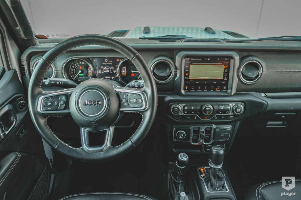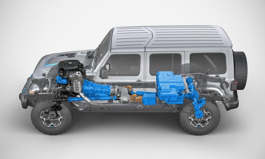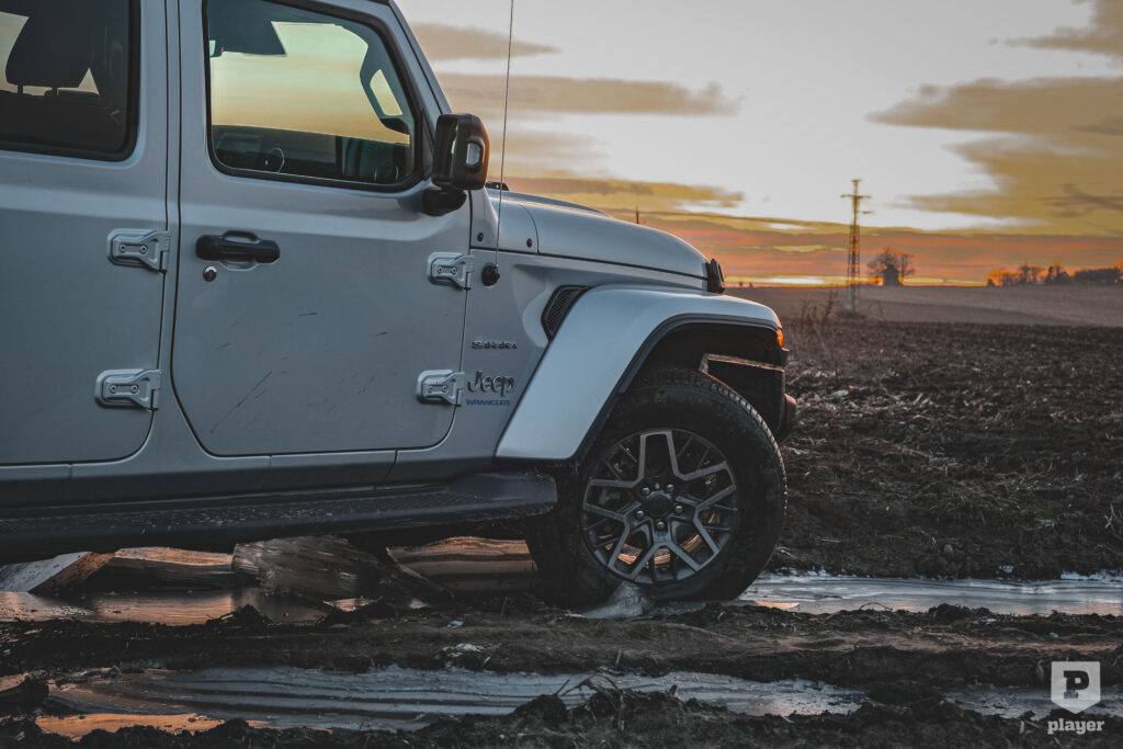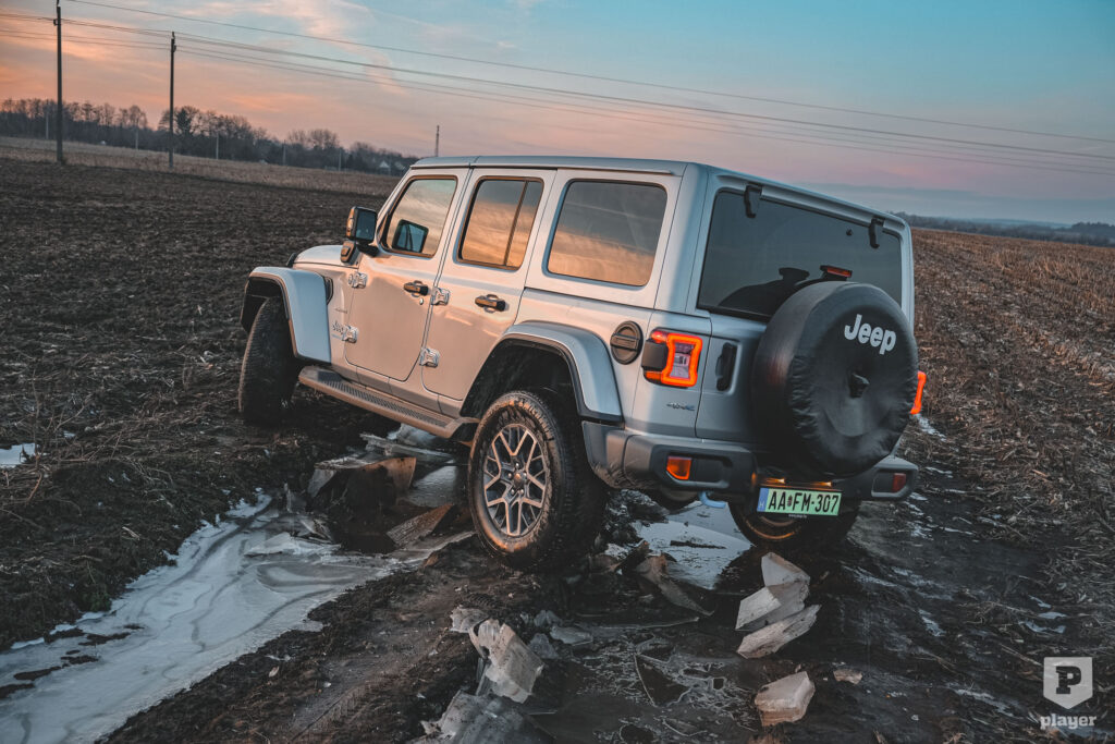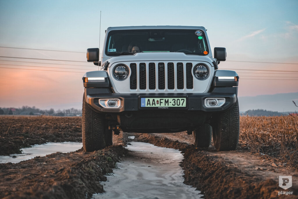 Terepes használatban az elektromos segédhajtás ügyesen kisimítja az amúgy darabos terepjárótechnikát. A finoman adagolható, de komoly villanyos indítónyomatékkal, a Wrangler finoman, ügyesen, szinte kecsesen lépkedi át az akadályokat – akár gyári kerekeken, országúti gumival a jeget is feltörve keresztben a sárban a mély traktornyomokat: