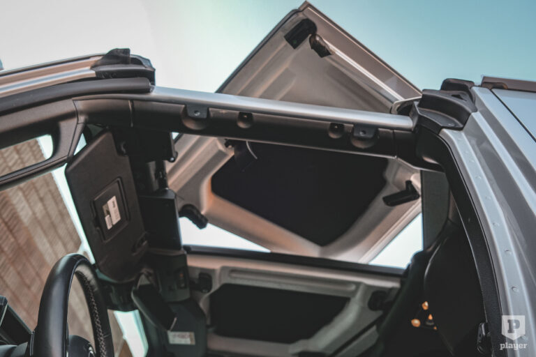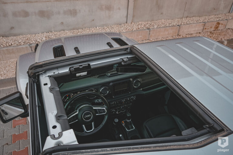 Levehető ajtók, kivehető tetőpanelek, leemelhető hátsó tetőmodul: látványos, vicces, izgalmas. Apró hátránya a krosszautós lecsupaszítás lehetőségének, hogy elég ezt egyszer megcsinálni, majd elmenni földútra egy száraz napon, és a kocsibelső pillanatok alatt elveszíti szalonhangulatát, kicsit kőművesbrigádos furgonokra emlékeztető munkagéppé változik örökre. A tesztautó csekély futásteljesítménye mellett is kitakaríthatatlan, minden redőjében poros-foltos terepjáróvá változott már.