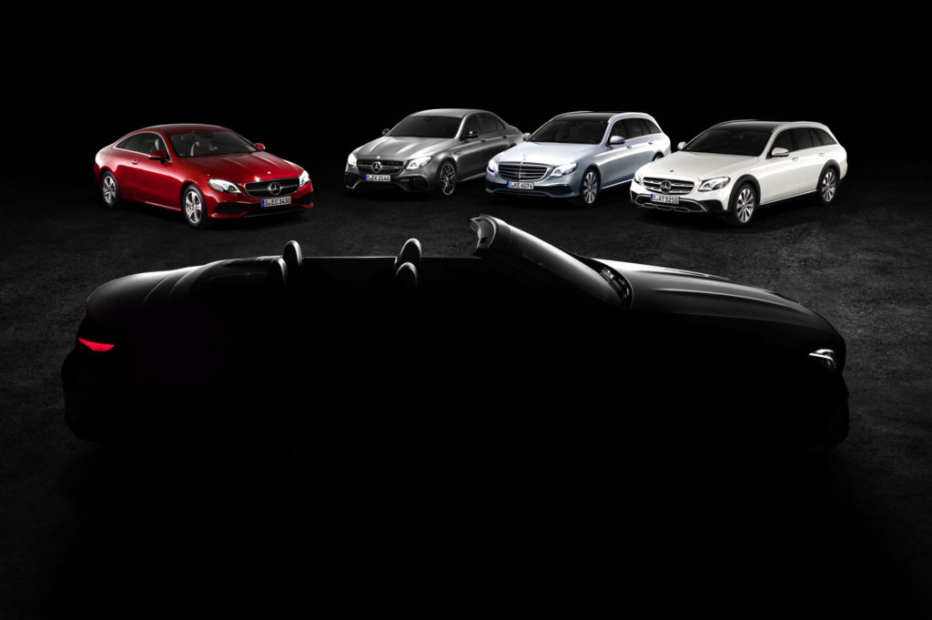 Egy képet azért már közzétett a Mercedes-Benz az E-osztály öttagúra bővült családjáról, ezen láthatod, hogy a limuzin, a kombi és az All-Terrain terepes kombi, valamint a Coupé mellett a csak sziluettjével látszó Cabriolet is igazi stílusos luxusautó lesz, az igazán szerencsések már ebben kezdhetik a nyarat.