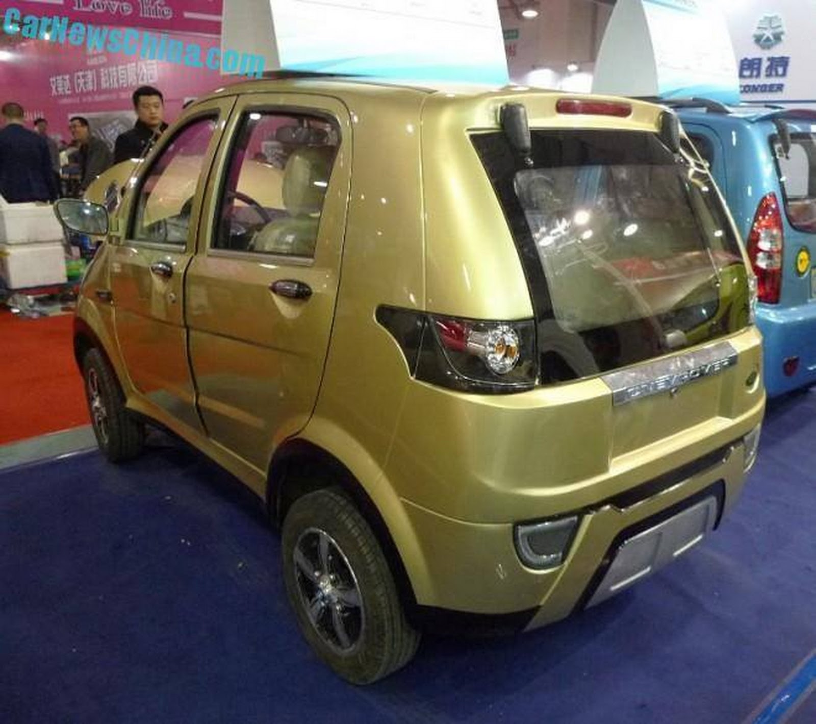 Itt azért egy – na jó, nem egy – fokkal pofátlanabbak voltak: a motorháztetőre felírták, hogy RANGE, a hátfalra pedig, hogy ONEVROVER, és tettek mellé egy Land Rover-logót is, ami viszonylag nehezen indokolható egy Jüelang X1 nevű szerkezetnél. A BMW felnikupakkal kapcsolatban már kérdést sem teszünk fel.