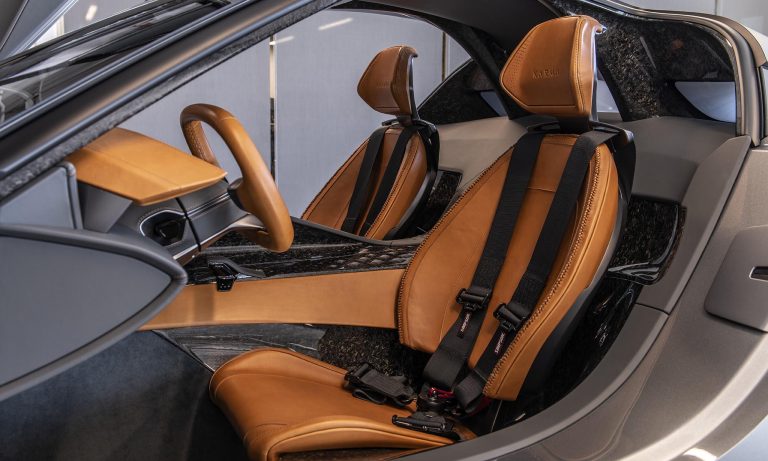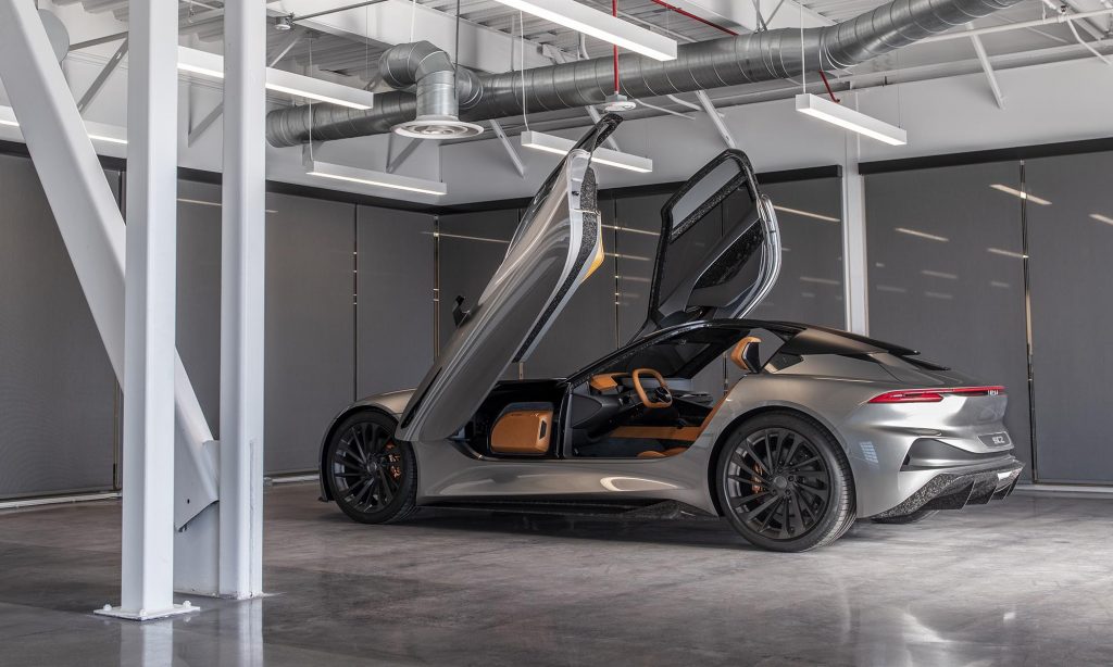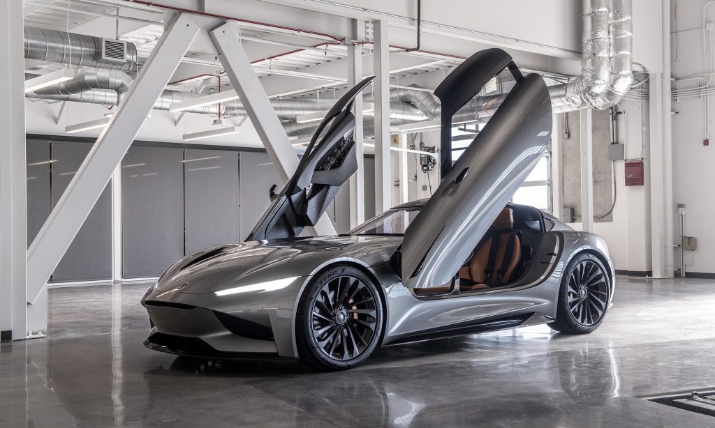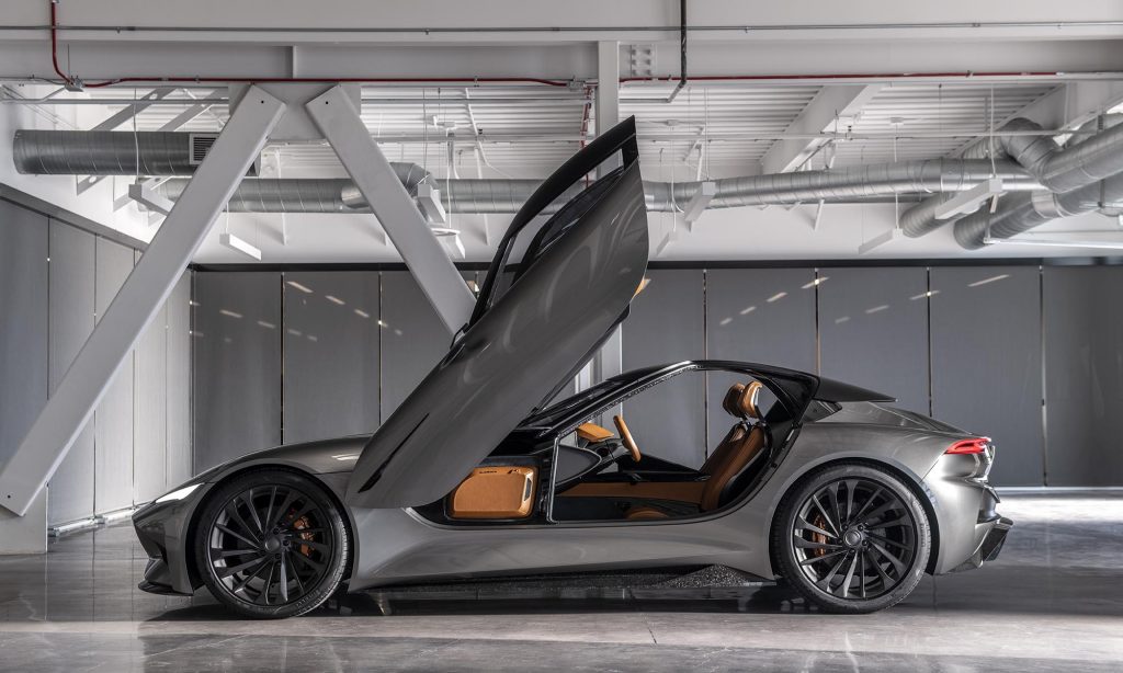 a hatalmas szárnyas ajtókkal elég feltűnő jelenség a kétüléses sportkocsi, ami a teljesítményével is megszorongathatja a Teslát.