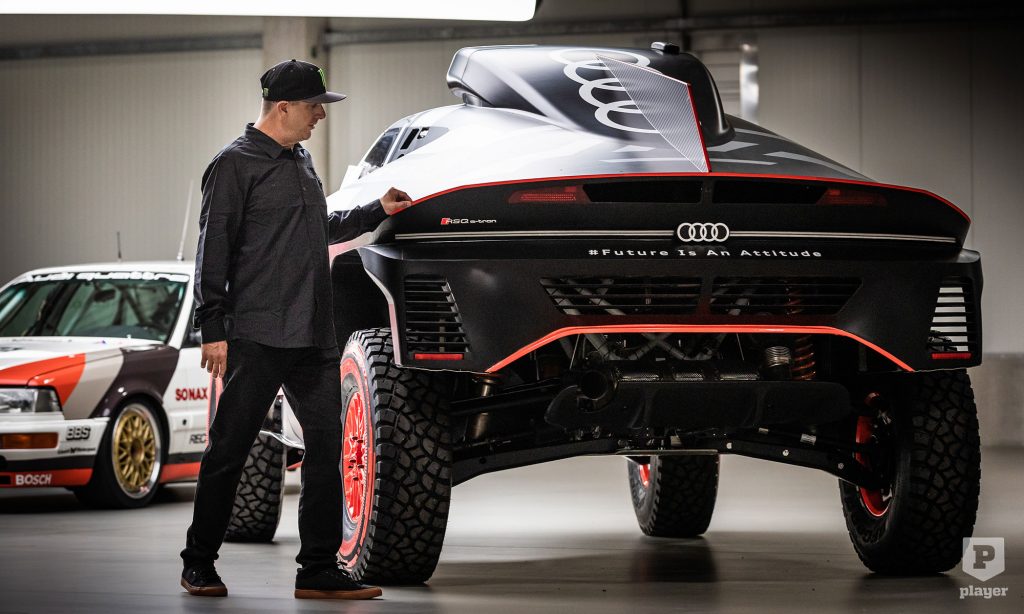 de az Audi elsősorban nem ezért szerződtette le az amerikait, hanem azért, hogy az elektromos versenyautók terén dolgozzanak együtt, mint amilyen a következő Dakar-ralira készülő RS Q e-tron is. De azért reméljük, hogy egy pár Gymkhana-videóra is marad ideje.