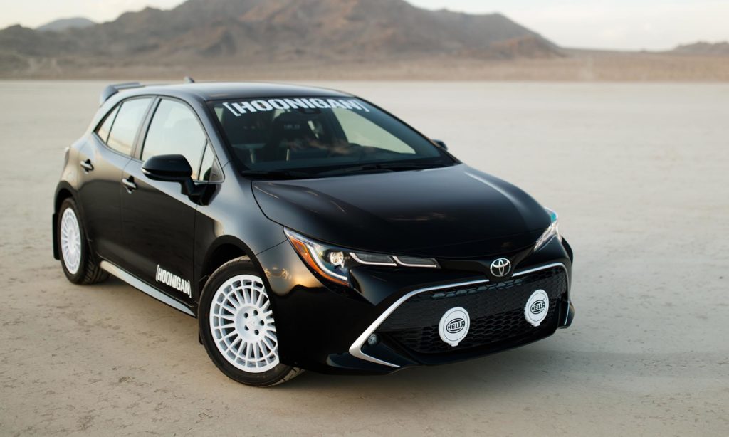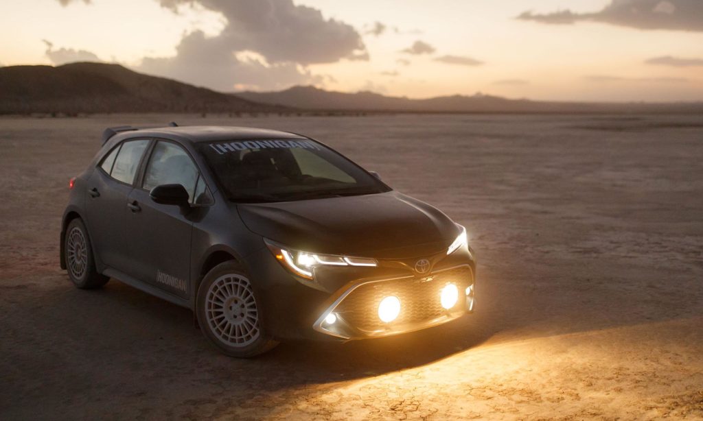 Az Egyesült Államokban egy ideje már kapható, mostanra az első átépítések is elkészültek belőle. A Hoonigan műhelyéből jött ki ez a Corolla, amit ralis stílusban alakítottak át, és a fehér könnyűfém kerekekkel, sárfogó lapokkal és beépített kiegészítő fényszórókkal elég menő is lett.