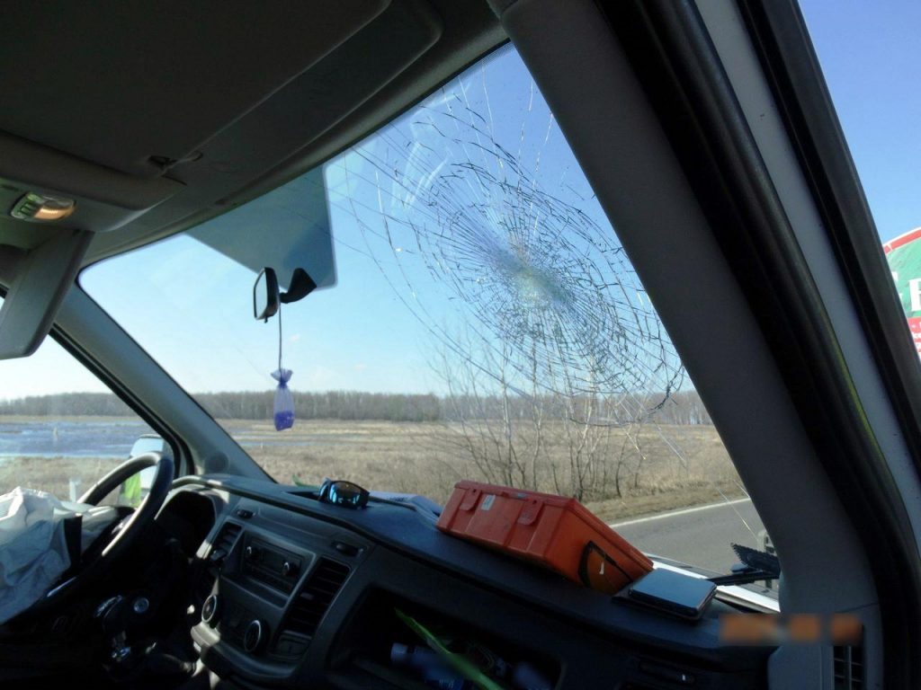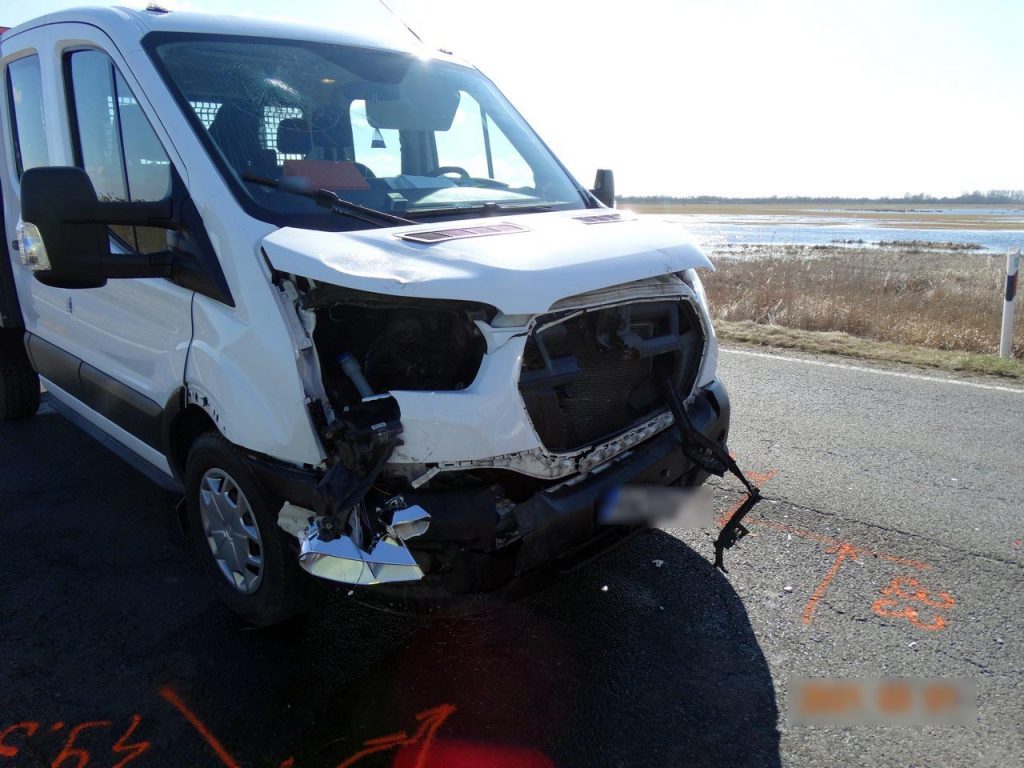 A képen látható baleset március elsején történt a 33-as úton, a kisteherautó beleszaladt az előtte forgalmi okból megálló kamionnak. A Transit utasa nem használta a biztonsági övet, ezért a fejével a szélvédőnek csapódott, be is törte az üveget.