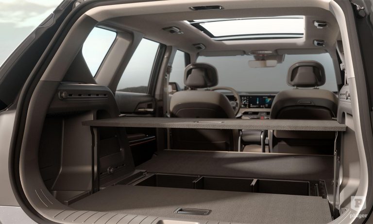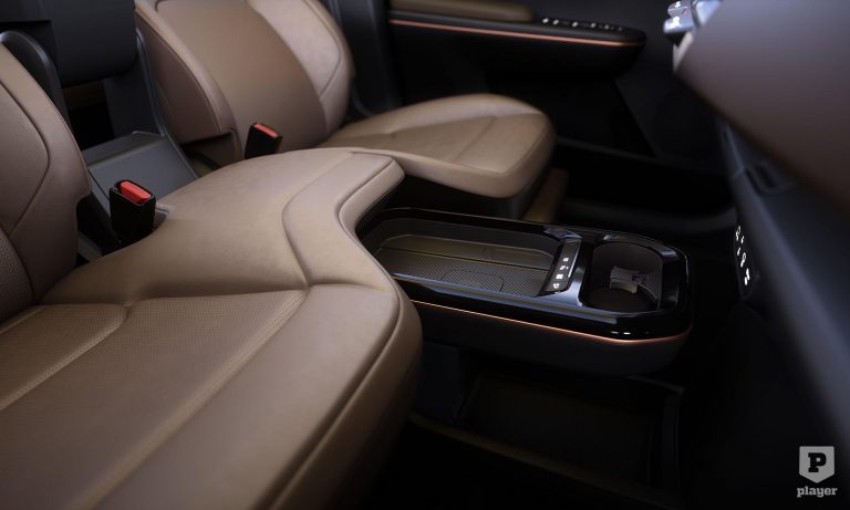 Az utastér érdekessége, hogy a jobb első utasülés ülőlapja szinte a vezetőülésig ér, és nem minden cél nélküli ez a kanapészerű kialakítás. A Kia szerint ugyanis ágyat lehet hajtogatni az ülésekből, amivel kempingezésre is beválik majd az EV5, ehhez pedig asztallá alakítható kalaptartó, valamint mini hűtőszekrény is lesz a fedélzeten.