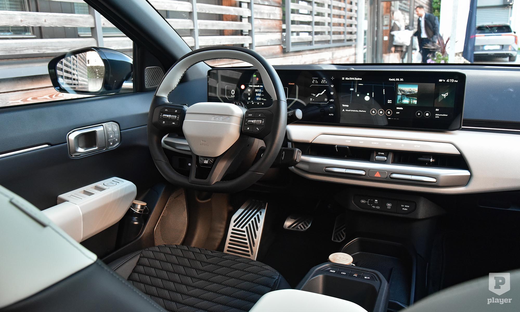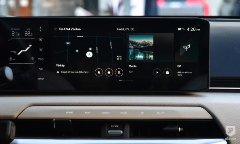 Jobban megnézve feltűnhet, hogy a két képernyő közé került egy 5,3 colos panel is a klímaberendezésnek, kár, hogy a vezető felől a kormánykerék karimája kitakarja. A fedélzeti rendszer menüje logikus, a vezetési asszisztensek kapcsolásához be tudsz állítani gyorsgombokat, a töltés ideje közben pedig olyan alkalmazásokat nézhetsz, mint a YouTube, a Disney+ és a Netflix. Az ülések alatt 230 voltos konnektor van, ezt a Kiát powerbankként is használhatod.