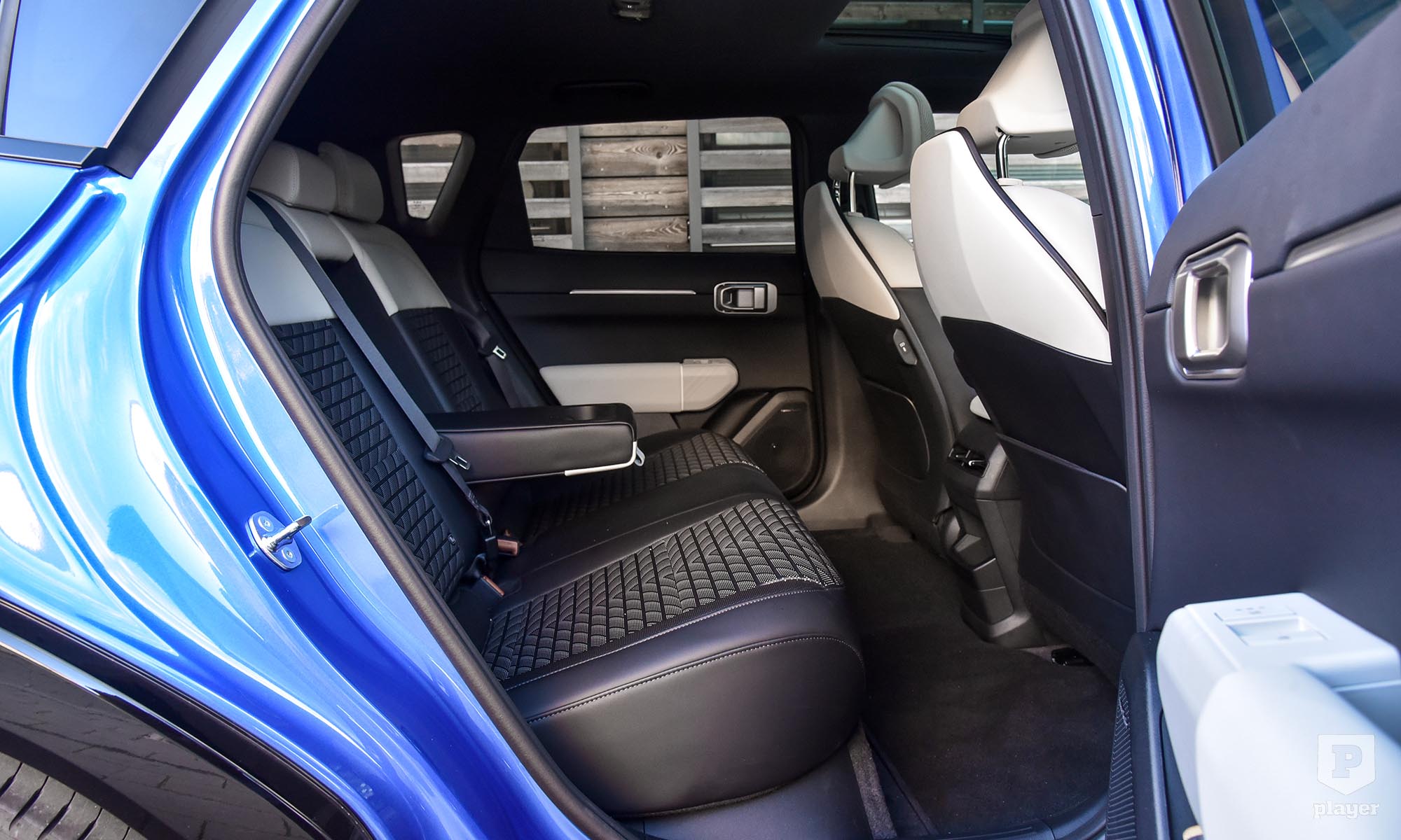 Beülve megállapíthatjuk, hogy az EV4-ben tényleg rengeteg a hely. Nem is az első üléseken meglepő a térbőség, hanem hátul, ahol a sík padló és a relatíve magas tető miatt egyáltalán nem érezzük kompaktnak a teret. Lábtér van bőven, bár az alacsony ülőlap miatt magasabb utasok már felhúzott lábbal kénytelenek ülni, ami hosszabb távon nem kényelmes. Ötletes viszont, hogy az USB töltőket az első ülések támlájába rejtették, így nem a lábtérben kell keresni.