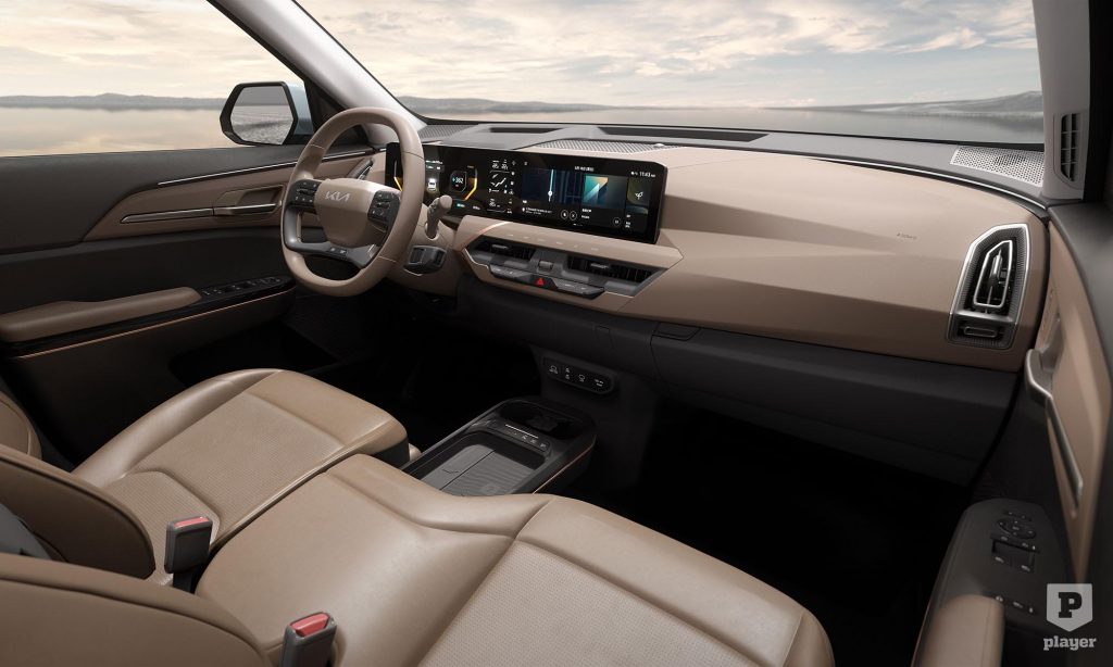 Belső tere is az EV9-ből lehet ismerős, a dupla képernyős műszerfalat minden újabb Kiában megtaláljuk,