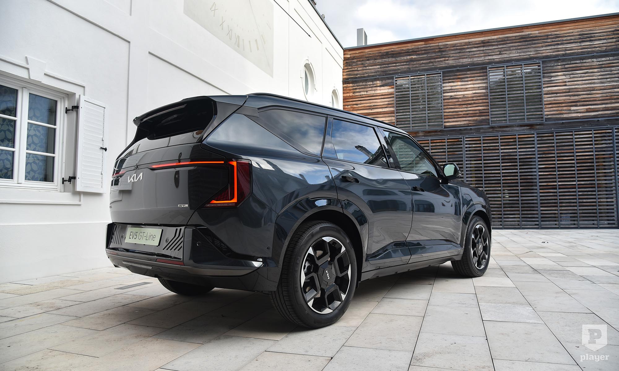 Ha ismered az új Kiákat, akkor az EV5 dizájnja is ismerős lehet, hiszen ez is az elsősorban elektromos autókhoz kitalált irányzatot követi. A sziluettje határozottan szögletes, ezzel masszívabb hatást kelt, mint egy Sportage, és a fénycsíkokból alkotott menetfények is karakteres külsőt adnak neki. Nagyok a kerekek is, már alapáron is 18 colosak, a sportos GT-Line 19-eseket kap, a később érkező csúcsmodell, a GT pedig 20 colos kerekeken gurul majd.