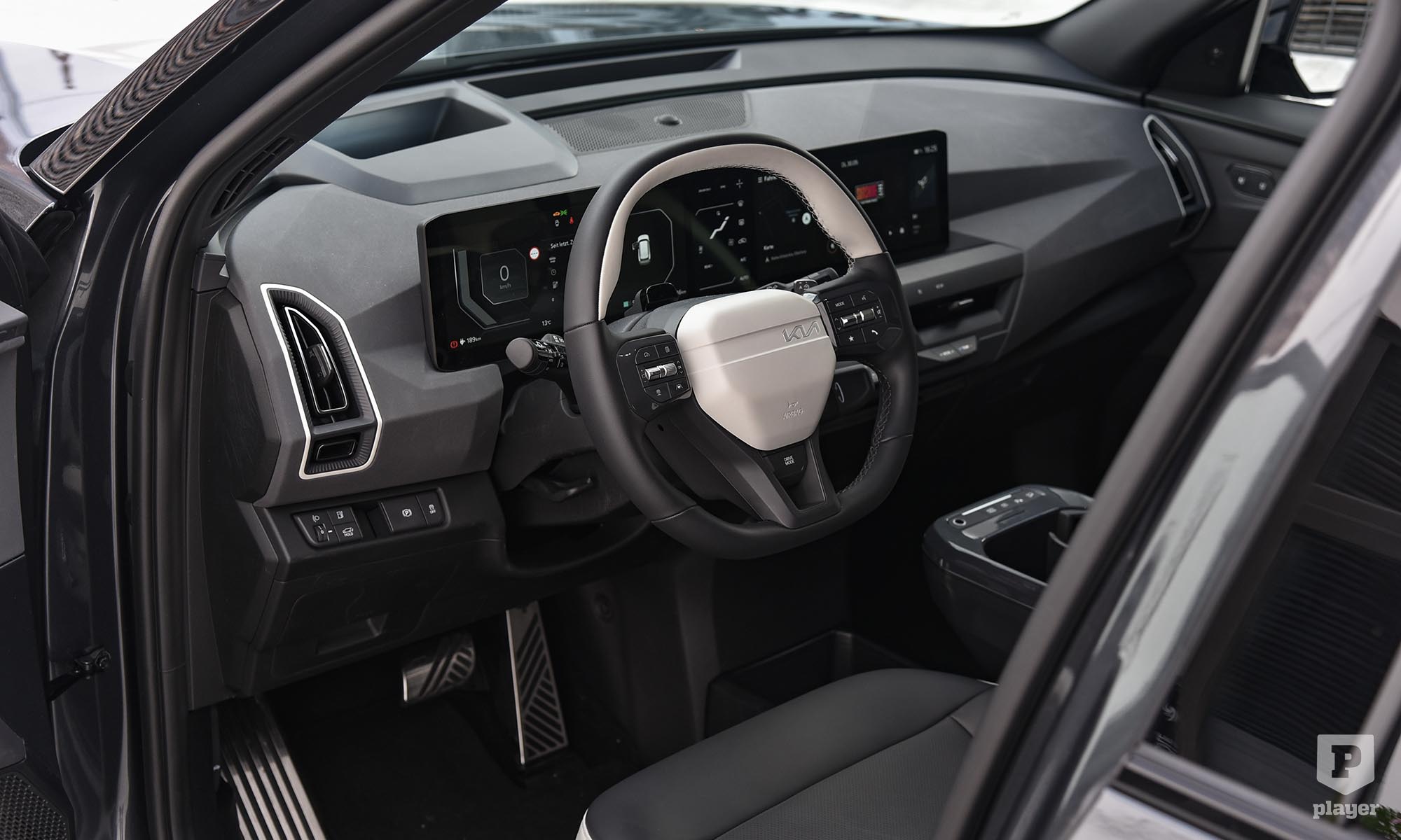 Beülve is ismerős környezet fogad, hiszen a Kia tervezői azt a modern, letisztult berendezést szabták át, ami az új elektromos modelljeiket jellemzi. A műszerfalat itt is a panorámakijelző uralja, egy 12,3 colos képernyővel a műszereknek, egy másik 12,3 colos érintőkijelzővel az infotainment rendszernek, és közöttük egy 5,3 colos panellel, amin a klímát lehet vezérelni. A középső kijelző alatt van egy sor érintőkapcsoló a főbb funkciók gyors eléréséhez.