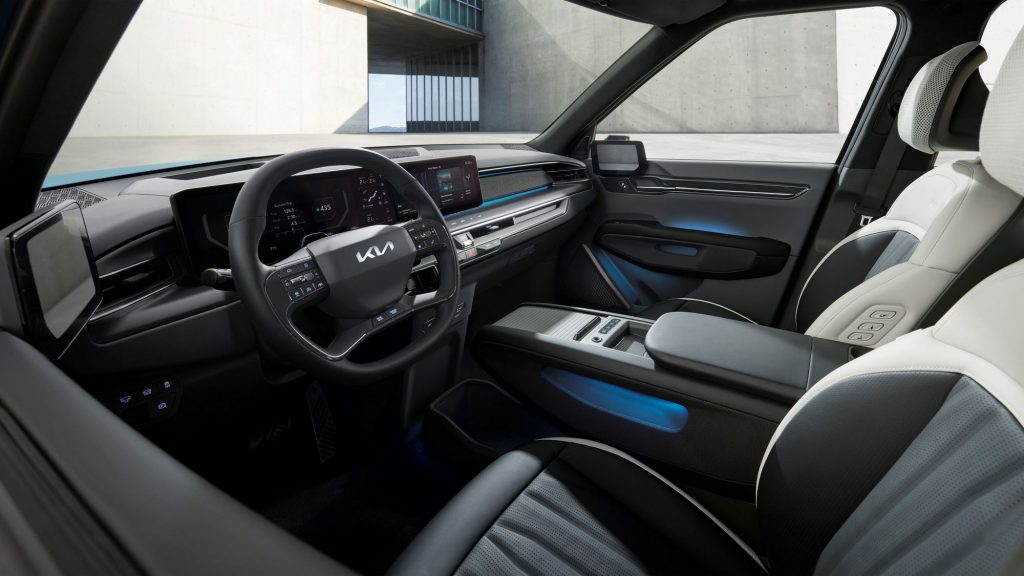 A webes leleplezőparti konferansziéja Karim Habib volt, akiről azt kell tudni, hogy a BMW-nél, a Mercedesnél és az Infinitinél dolgozott, mielőtt 2019-ben megérkezett a Kia globális dizájnigazgatói székébe. Az EV9 nem is akármilyen látvány és mint a márkánál újabban ez is jellemző, ez a modell sem illeszkedik szorosan a már létező Kiák stílusvilágába. A klasszikus márkajegyek némelyikét nem is találjuk meg rajta ( tetőbe harapó szélvédő), némelyike átalakult (a tigrisorr Digital Tiger Face-szé, Digitális Tigris Arccá evolválódott), némelyik pedig teljesen új dolog (mint a háromágú vonalkombinációból álló első és hátsó pozíciófények).