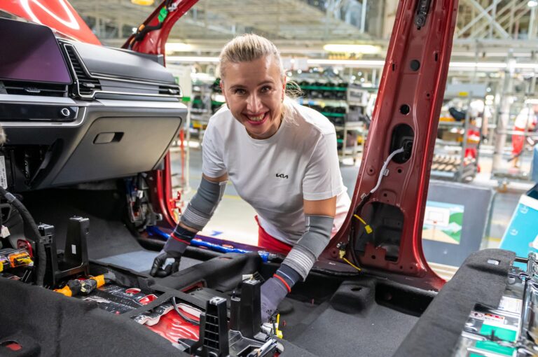 A Kia zsolnai üzemében 2006-ban vette kezdetét a termelés, ami az Európának szánt első generációs Ceeddel indult, ezt követte 2007-ben a Sportage második generációja, annak elődje ugyanis még Koreában készült. Büszkén árulták el, hogy idén júniusban gurult le a sorról az ötmilliomodik itt gyártott autó. A termelés 60 százalékát a Sportage, a fennmaradó részt a Ceed, és annak változatai, a Ceed SW, a ProCeed és az XCeed teszik ki. A legnagyobbnak számító exportpiac Nagy-Britannia (ide az autók 16 százaléka kerül, ezt követi Németország és Spanyolország 11 és 10 százalékkal). De természetesen hazánkba is innen érkeznek az autók, aminek az éves mennyiségét nagyjából négy nap alatt gyártják le a zsolnai üzemben.