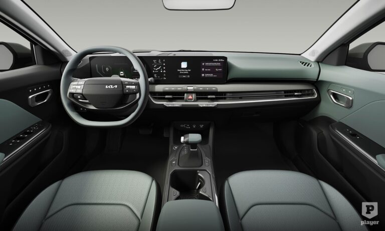 A legújabb divatnak megfelelően két 12,3 colos képernyő alkotja a műszerfalat, közte egy 5 colos kijelzővel a klímaberendezésnek, mint az EV9-ben. Még csak az amerikai piac kínálatát ismerjük, ott a helyi igényeknek megfelelően kétliteres, 147 lóerős szívómotorral és 1,6 literes, 190 lóerős turbós benzinmotorral kerül piacra a Kia K4.
