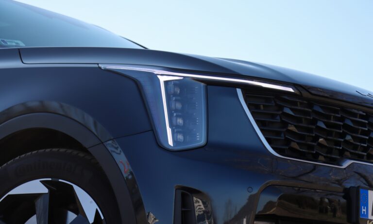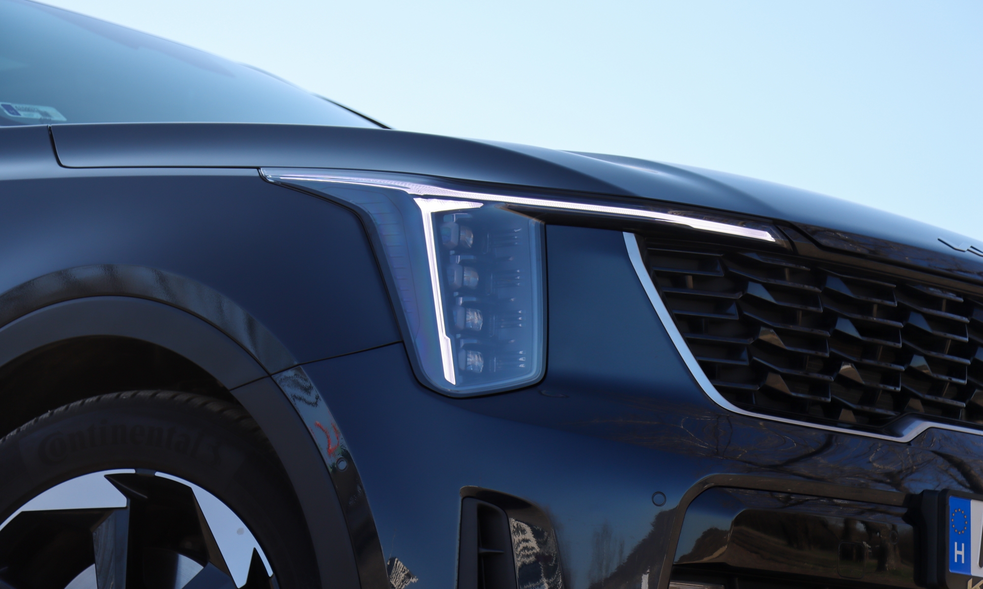 De kezdjük a külsejével! A Kiák régóta jól néznek ki, egy ideje pedig határozottan bátrak a dizájnerek, és nemcsak az EV sorozatnál élhetik ki magukat, hanem a Picantón is. A Sorento a negyedik generációval lett igazán tekintélyt parancsoló, nagyobbnak tűnik valós méreténél, de a modellfrissítéssel kapta meg a függőleges fényszórós, nagyobb hűtőmaszkos orr-részt, ami szerencsére nem utólagos faragásnak tűnik, hanem jól illik az arányos, alapvetően szögletes, helyenként finoman domborított karosszériához.