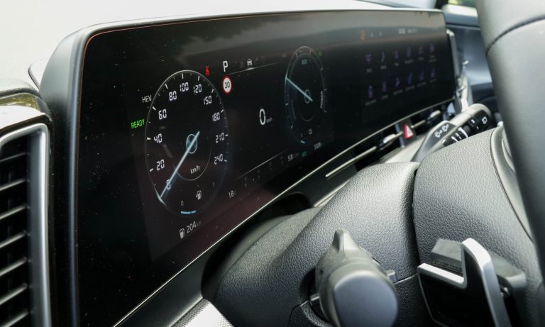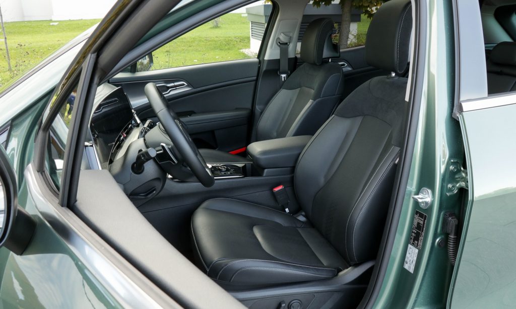 Leírtam már az EV6-nál, leírom most is: az előző generációs Kia modellek egyszerű, jól áttekinthető, sok fizikai gombbal könnyen kezelhető műszerfala jobb volt, mint ez, de a mai érintőképernyős, tapogatódzós világban a Kia oly sok modellben megtalálható rendszere abszolút a jobbak közé tartozik. És örüljünk annak, hogy az ülésfűtés és ülésszellőztetés remek helyen lévő, könnyen, vakon is megtalálható rendes, igazi nyomógombot kapott!