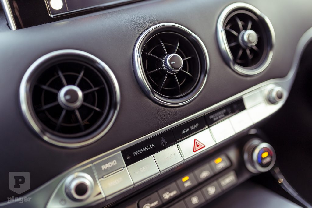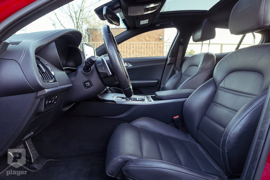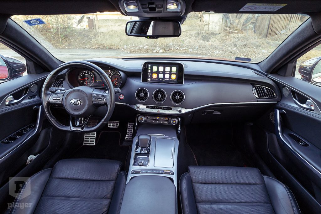Sok helyen félrecsúszhatott volna a Stinger koncepciója, de talán az egyik legkínosabb eset az lenne, ha a derék kiások jogos büszkeségükben jogtalanul luxusautónak próbálnák feltüntetni a Stingert. De nem: az egyszerűségében is mutatós beltér a valódi alumíniummal, a középső kerek szellőzőkkel, az alul lapított kormánnyal, a mögötte és a középen lévő monitorral hasonló, mint a külső dizájn: az, ami, nem több, de véletlenül sem kevés.