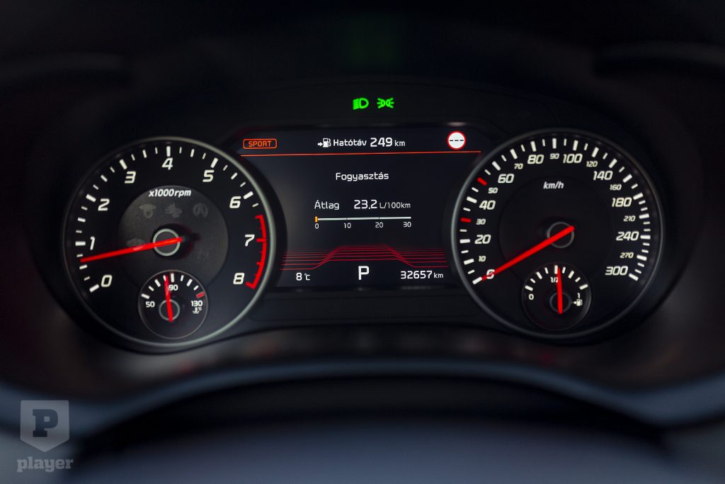 Ennek ellenére a Kia remekül tartja az utat, miközben még kényelmesnek is mondható, egyenesben és kanyarban is jól fut, igazán stabilnak és hülyebiztosnak érződik – kérdés, hogy utóbbi előny vagy hátrány egy száguldásra csábító és arra alkalmas autóban.
