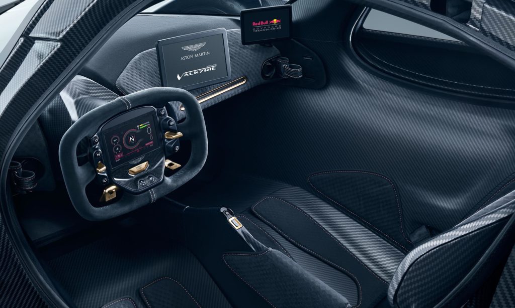 Megmaradt az eredeti formaterv is, de a Valkyrie hátsó részét kissé átdolgozták, a lámpák már nem csíkszerűek, hanem a karosszéria két szélére kerültek. Belül most először láthatod az Aston Martin csúcsgépét, amiben úgy kell ülni, mint egy Formula–1-es autóban: a vezető és utasa is nyújtott lábakkal foglal helyet, és négypontos övek szorítják őket.