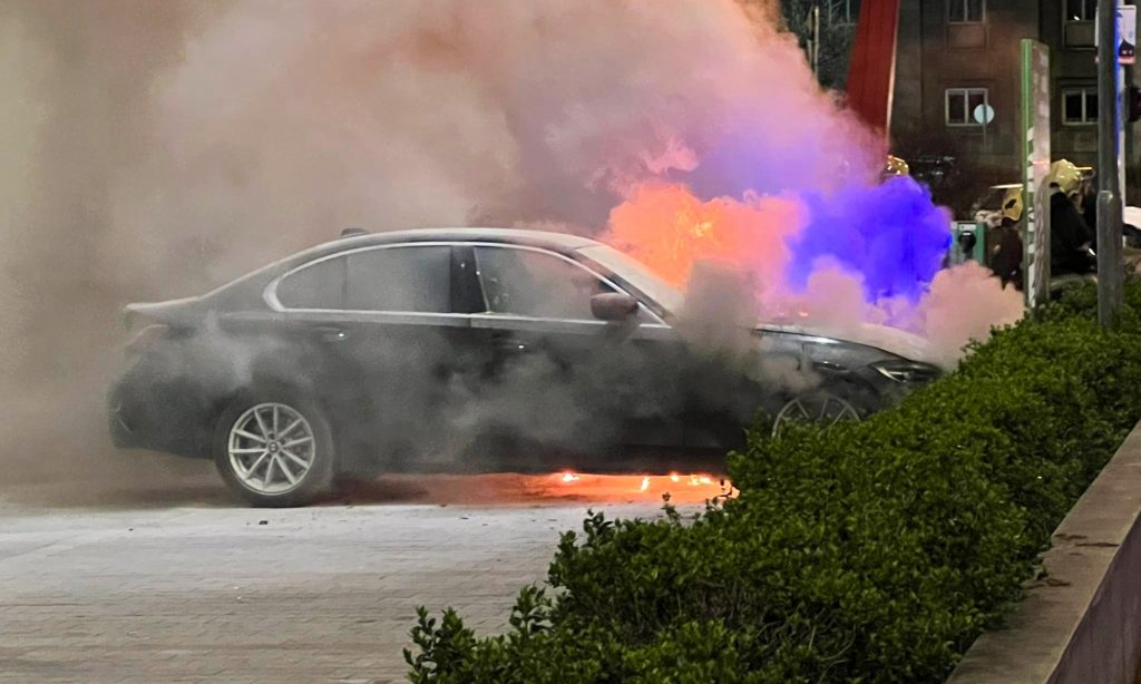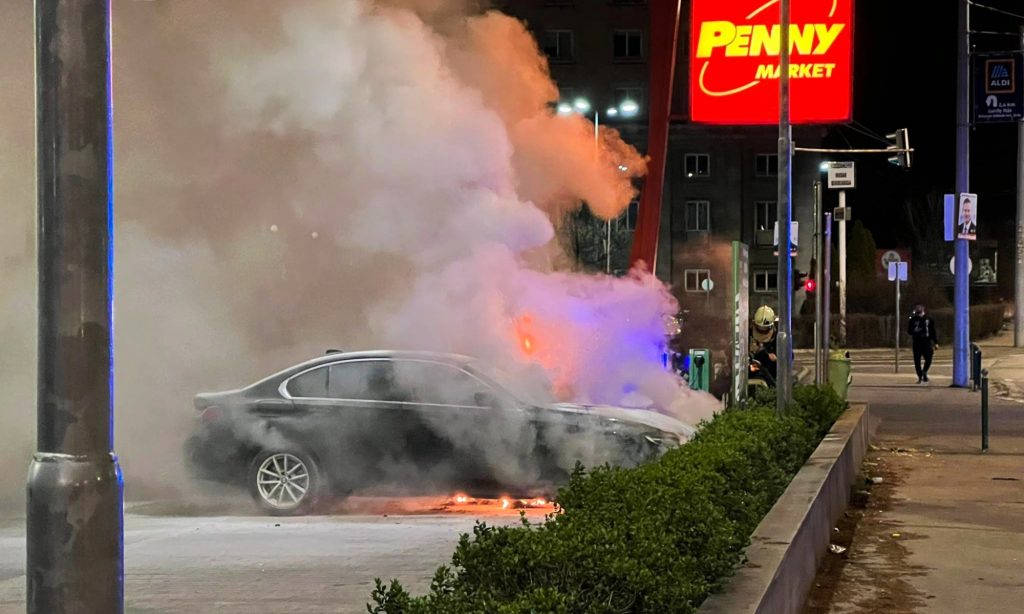 Olvasónktól, Hetei Danitól kaptuk a képeket, aki kedd este épp a pesti Könyves Kálmán körúton járt, ahol a Penny Market parkolójában lángolt egy BMW 330e. A konnektoros hibrid épp töltőn volt, és a beszámoló szerint a bal első sárvédőn lévő csatlakozónál kezdett parázslani.