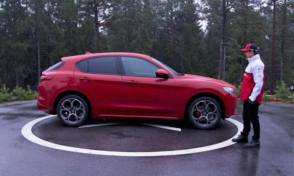 Kimi választása a Stelvióra esett, annak is a Veloce változatára, amiben kétliteres, turbós benzinmotor dolgozik 280 lóerős teljesítménnyel.