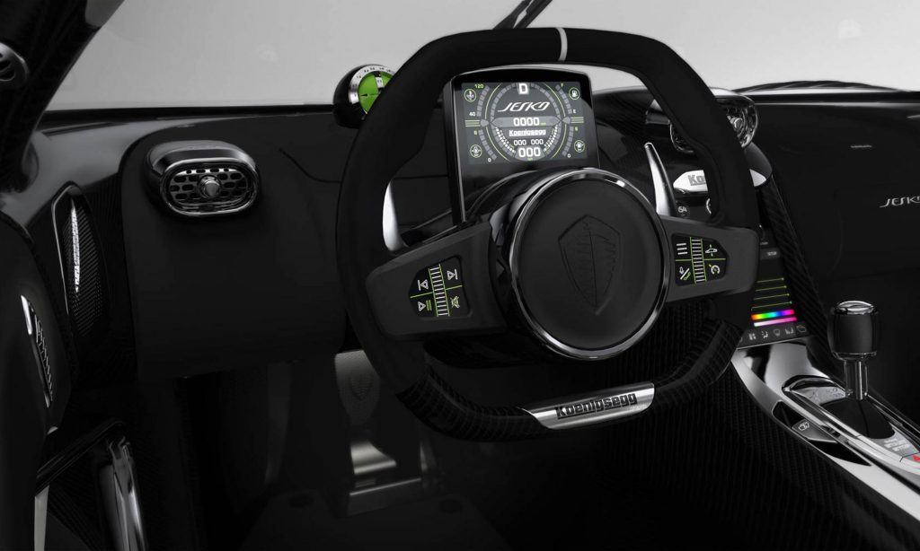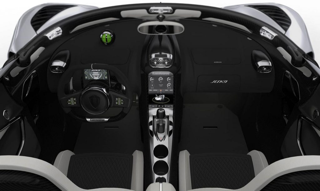 A Jesko minden részlete figyelemreméltó, az elöl 20, hátul 21 colos kerekek például szénszálas anyagból készültek,