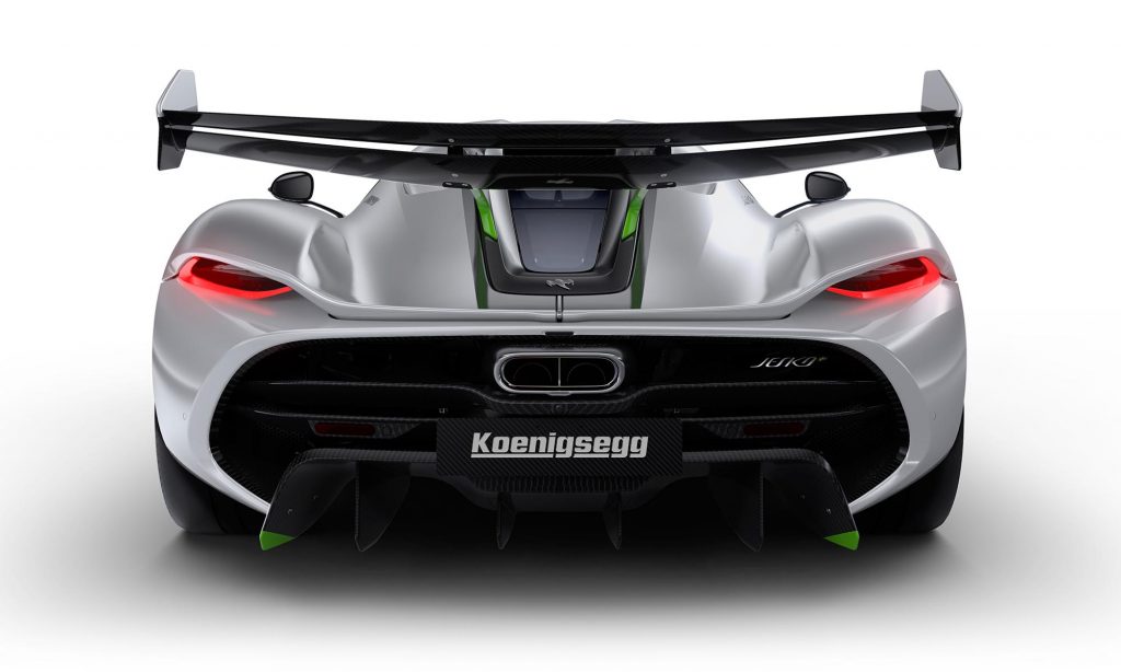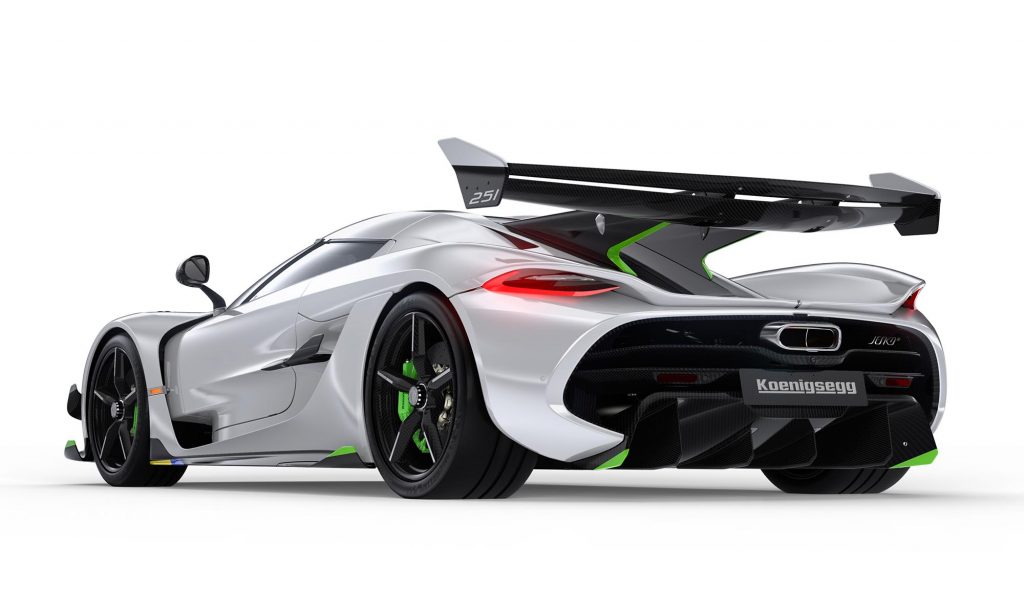 új főtengelyt kapott, és két húszliteres szénszálas tartályt, ahonnan elektromos kompresszorok a turbókat látják el levegővel. A Jesko ezzel 1280 lóerőre képes, ha benzinnel tankolják, de bioetanollal már kereken 1600 lóerő a legnagyobb teljesítménye.