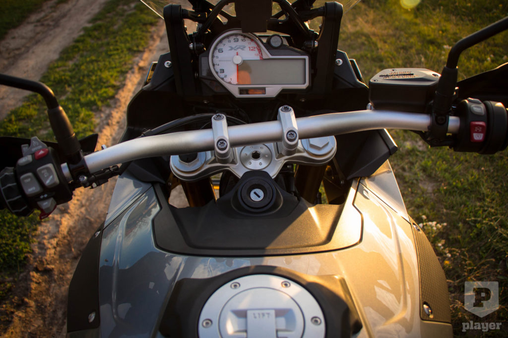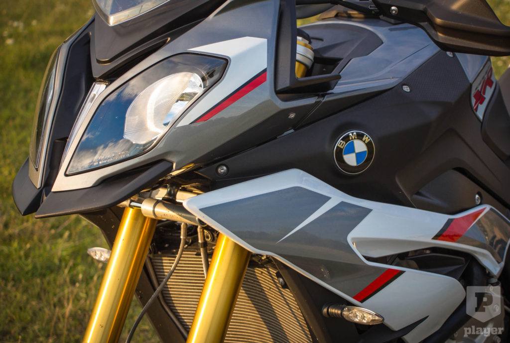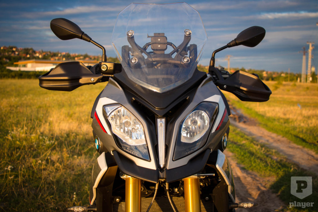 Elsőre nem tetszett a bringa. Egy kicsit értelmezhetetlen számomra a túra-sport motorokon ez az indokolatlan fejszerkezet, de leginkább a kiálló, csőrszerű izék. Ez elég szubjektív, szóval biztos van olyan, akinek meg ez a gyengéje, de ezt leszámítva a motor kicsit úgy néz ki, mint a pályatesó S1000RR. Hosszabb első villák, magasabb és kényelmesebb üléspozíció, szélesebb kormány, laposabb villaszög, és nagyobb tengelytáv, de ha nagyon hunyorgunk, akkor szinte megvesszük sportmotornak az XR-t.