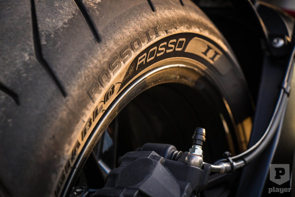 Adventure kategória, de a gyárilag szerelt Diablo Rosso abroncsok azért sokat elárulnak arról, hogy ezt a motort azért nem a mezőre szánja a BMW. Párszor letértem vele a főútról, hogy megnézzük, mit kezdhetünk az adventure jelenséggel, de megnyugodtam; ez a motor alapvetően országútra való, nem a sárba. Egyébként jobban elboldogul a földúton, mint egy speed gép, de az X6 sem egy terepjáró, ugye.