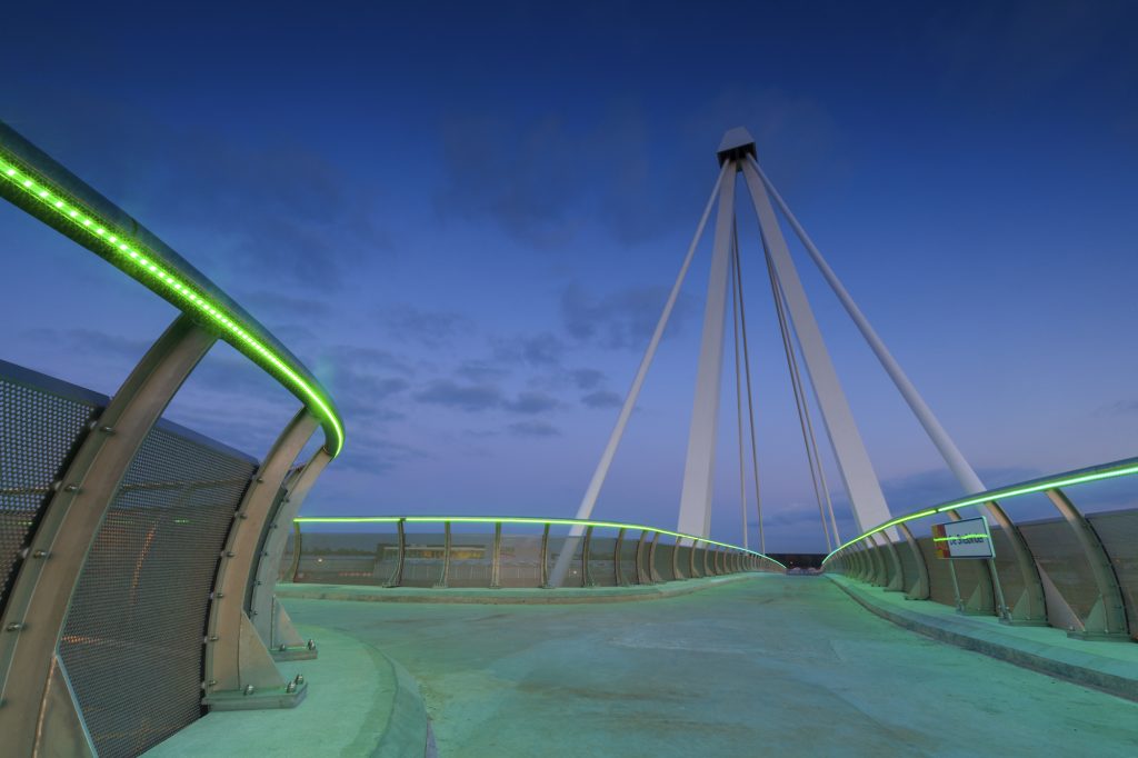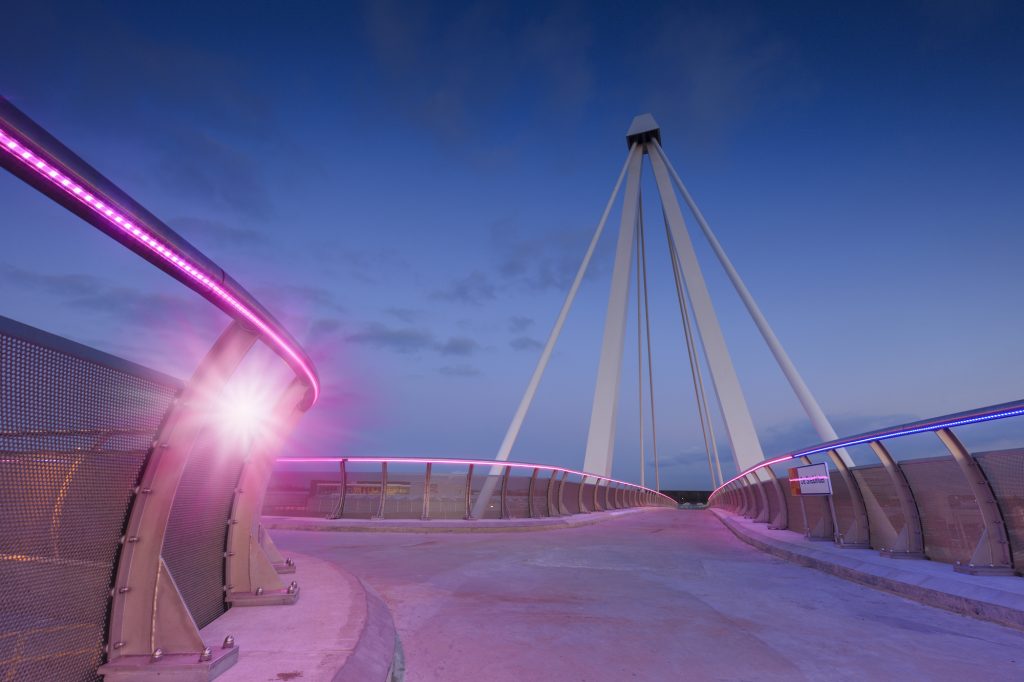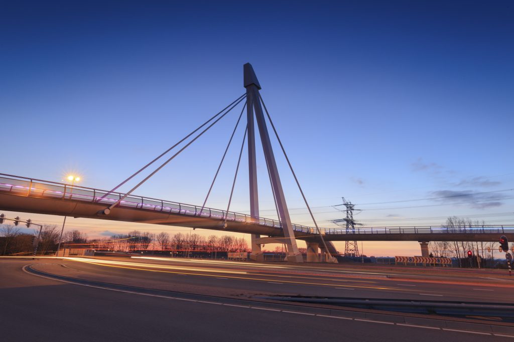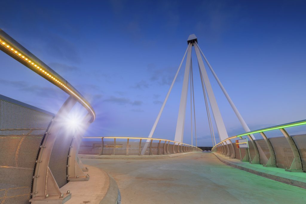 A 300 méter hosszú hidat egy 40 méter magas pilon tartja; a felső aszfaltréteg egy új kompozit, ami –5 fokban sem csúszik, így a fenntartási költségei is alacsonyabbak.