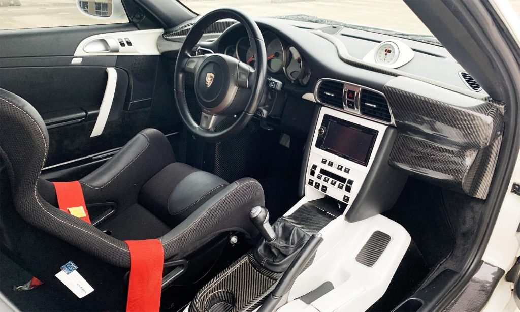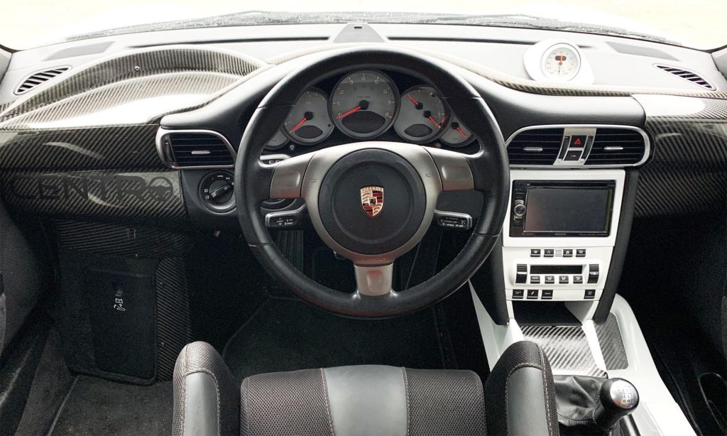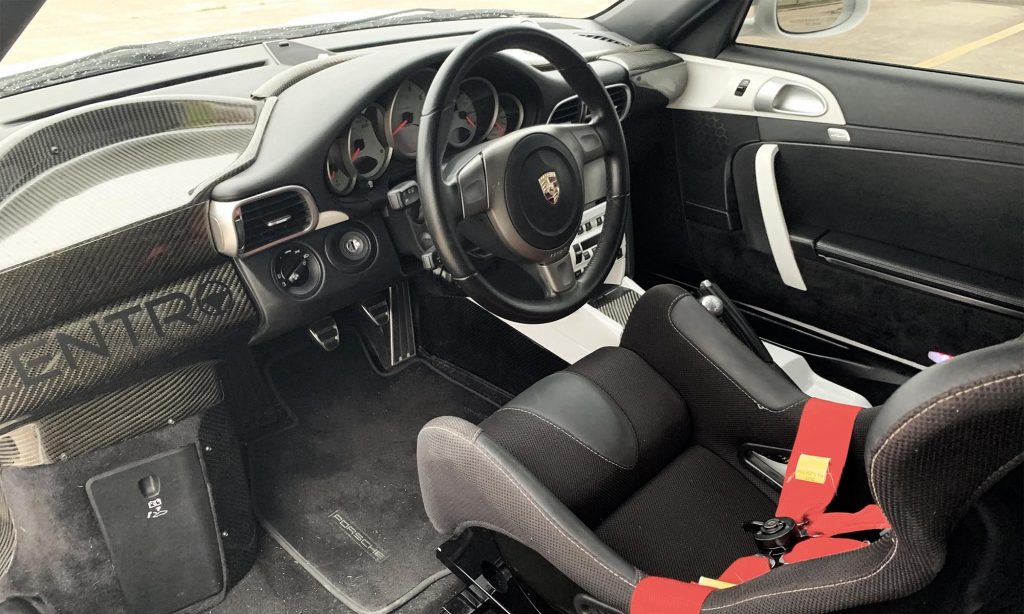 2008-ből származik ez a Porsche 911 Carrera S, amit az ohiói Trinity Motorsports műhelyében építettek át. A két első ülés helyére egyetlen kagylóülést szereltek be középre, és ehhez nemcsak a műszerfalat, de a tűzfalat és a padlót is alaposan át kellett alakítani. A középkonzol és a váltókar jobbra került, a beszálláshoz pedig oldalirányban is eltolható az ülés.