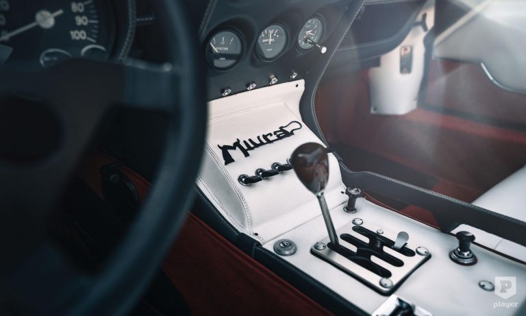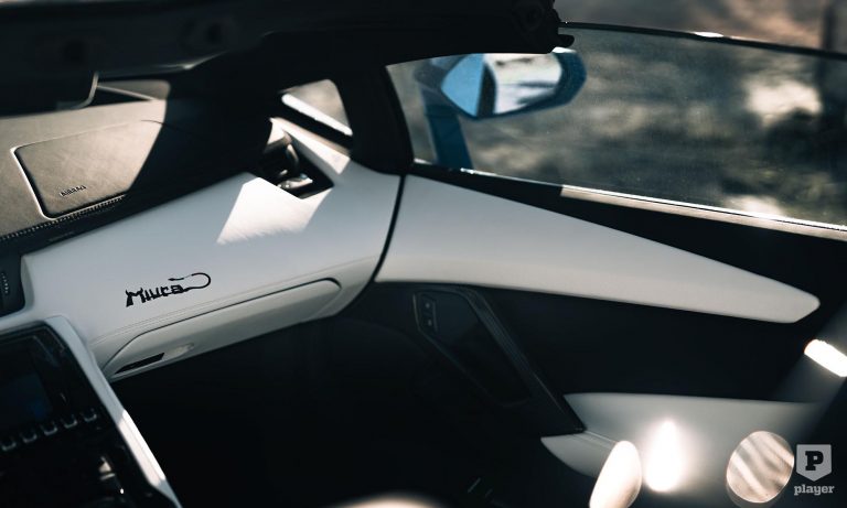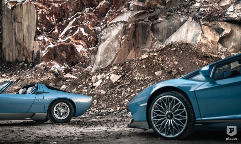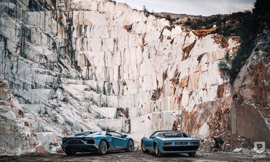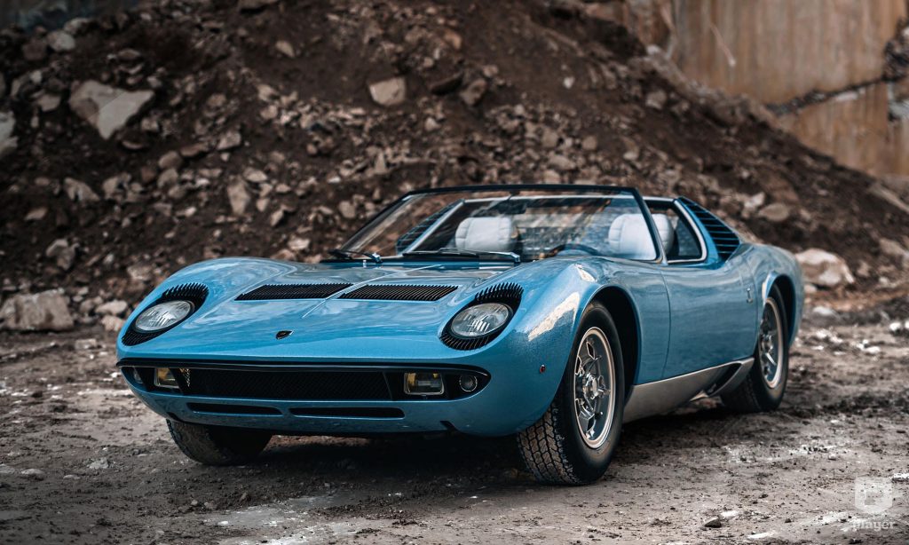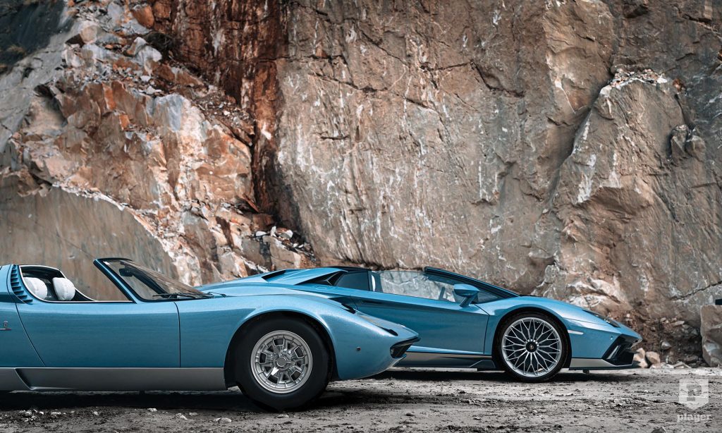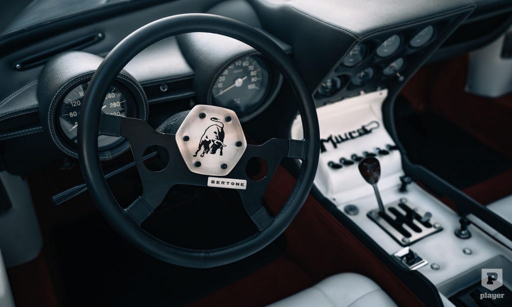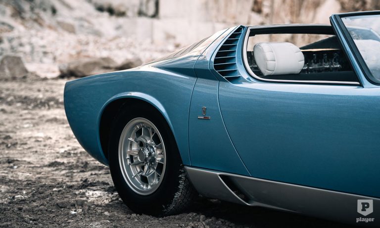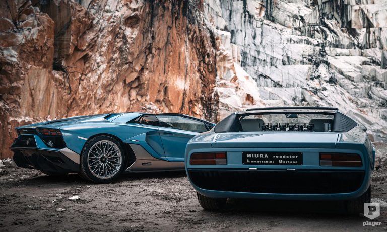 A kék és szürke színkombinációhoz a legendás Miura egyetlen példányban készült roadster változata adta az ihletet.