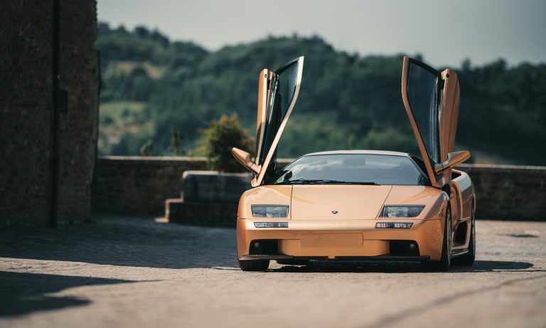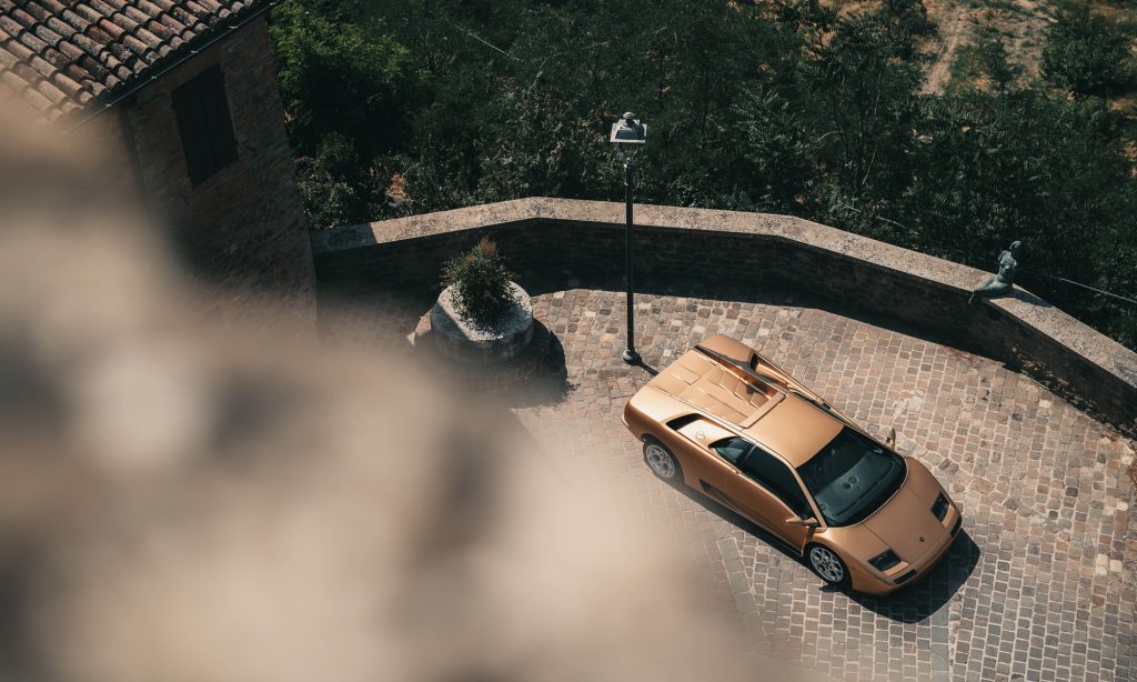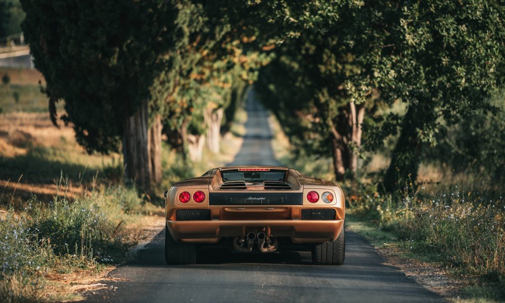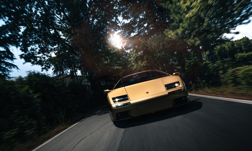 Limitált szériával búcsúzott a Diablo, ezeknek egyik legszebb példánya az Oro Elios nevű arany színű autó, mely csodálatosan mutat az olasz naplementében.