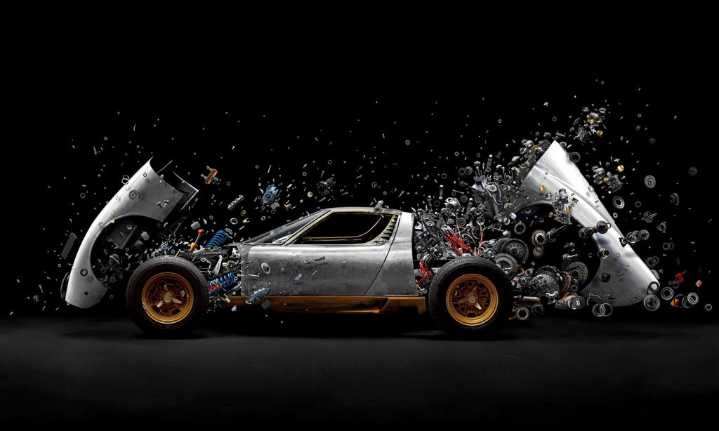 Fabian Oefner svájci fényképész úgy mutatja meg a valaha készült egyik leggyönyörűbb sportautót, ahogyan sosem láttad. Egy igazi Lamborghini Miura, ezerötszáz kép és két év munka van ebben a fotóban, ami igazi művészet.