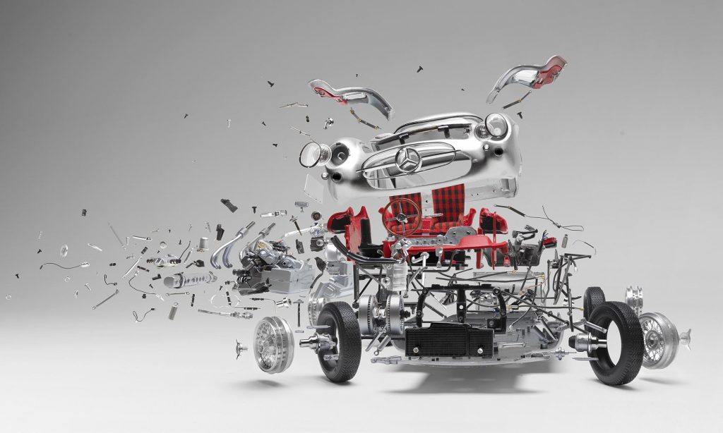Fabian Oefner öt évvel ezelőtt találta ki a Disintegrating című sorozatát, amiben legendás sportautókról készített képeket, mintha azok éppen darabjaira robbantak volna. A kétségkívül látványos fotók akkor méretarányos modellautók szétszedésével születtek, de Fabiannak mindig is álma volt egy igazi autóval valóra váltani a projektet.