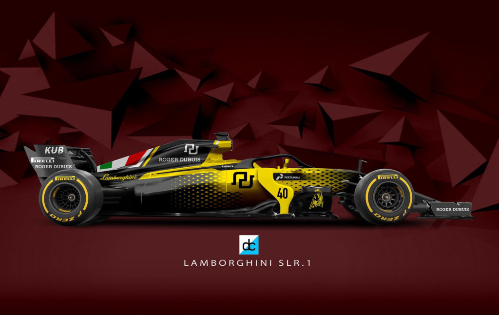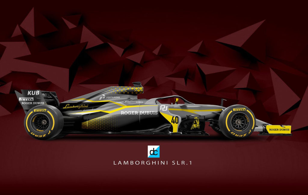 Többek között a Lamborghini is jelezte, hogy egyszerűbb és olcsóbb motorformula esetén fontolóra venné a visszatérést a Forma–1-be. Ennyi pedig elég is volt egy kreatív és ügyes kezű dizájnernek, aki meg is álmodta olasz luxussportautó-márka F1-es verzióját.