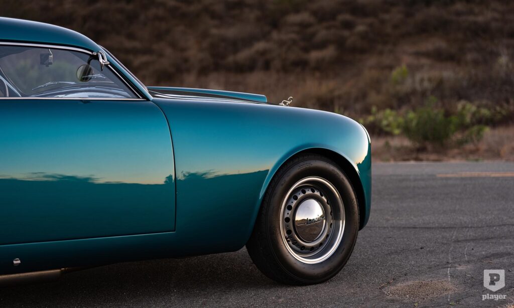 Már első pillantásra nem mindennapi a Fuorilegge, aminek a tetejét jelentősen megvágták, a sárvédőket pedig kiszélesítették a Mille Miglián és a 24 órás Le Mans-i versenyen is sikeres, Olivetti feliratos Aurelia GT versenyautó stílusában.
