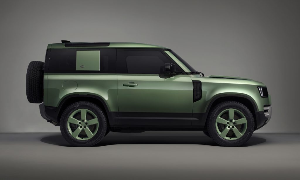 400 lóerős rendszerteljesítményű konnektorról tölthető hibrid Defenderhez, vagy szintén 400 lovas, sorhatos benzineshez és 300 lóerős turbódízelhez is választható a 75. évfordulós kiadás.