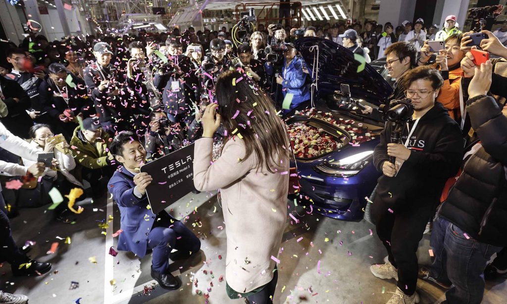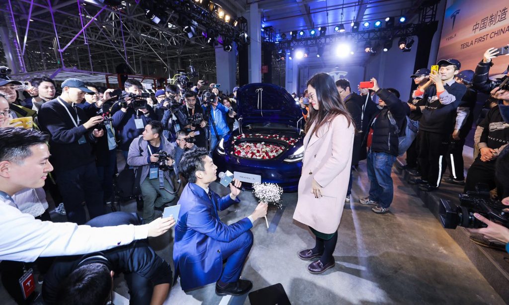 A kínai Tesla-gyár megnyitója talán nem a legromantikusabb lánykérős helyszín, de az biztos, hogy emlékezetes.