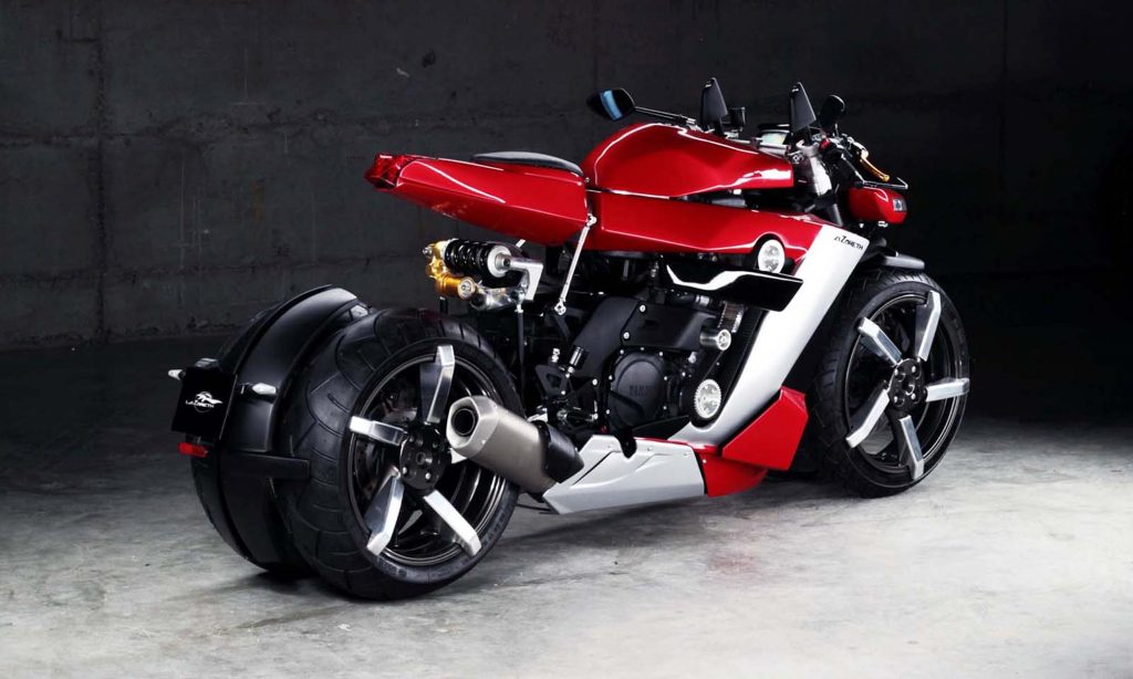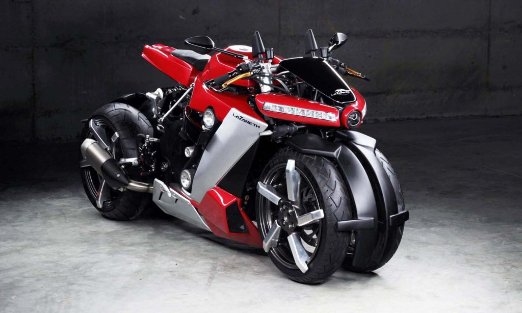 Néhány éve a francia Lazareth azzal keltette fel a figyelmet, hogy egy Maserati-motor köré épített egy elképesztő négykerekű motorkerékpárt.
