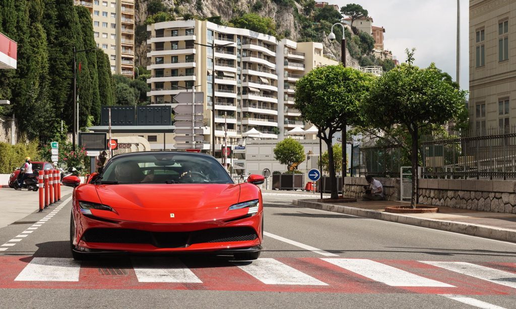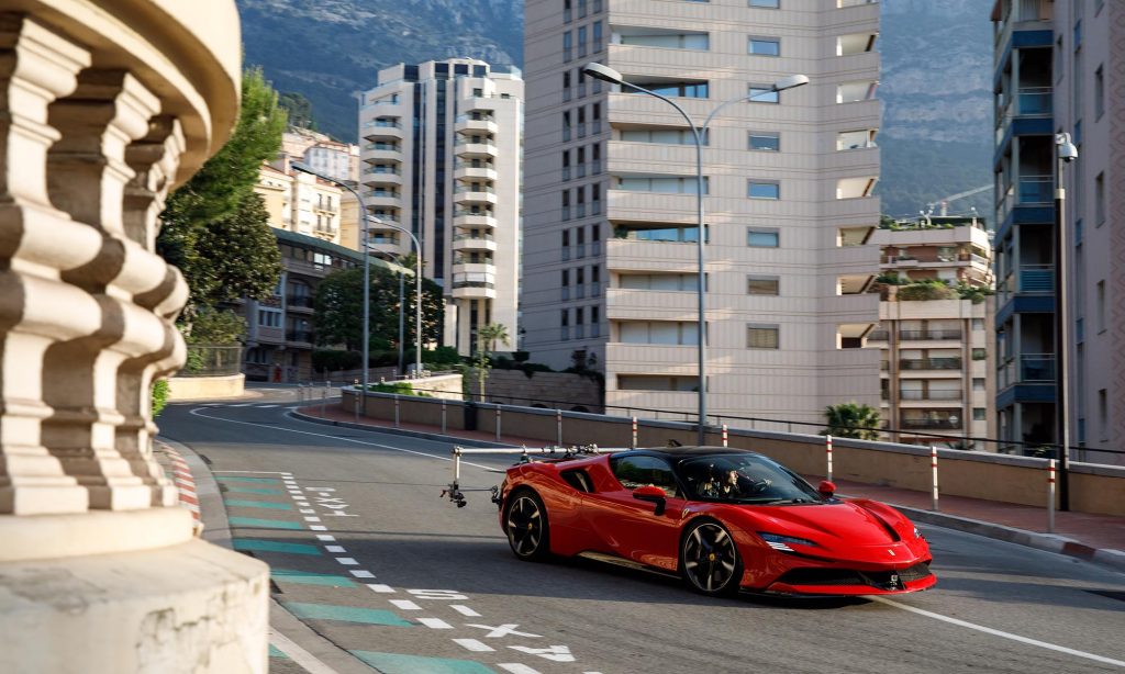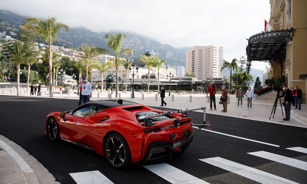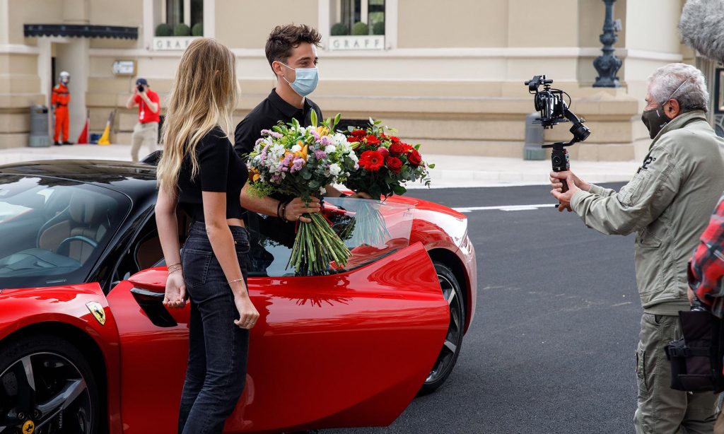 Charles Leclerc persze így is megmutathatta, mire képes az 1000 lóerős hibrid szuperautó, ami 2,5 másodperc alatt gyorsul százra, és a forgatás alatt a 240 km/órás sebességet is elérte vele a lezárt utcákon.