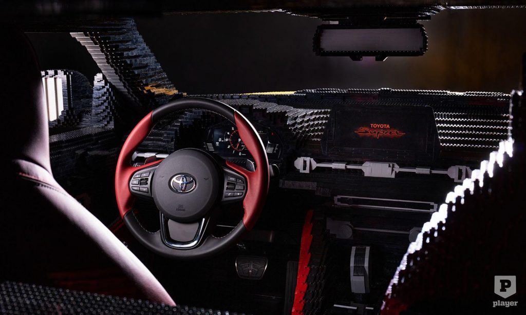 A LEGO-ból készült Supra érdekessége, hogy vezetni is lehet. A beépített elektromotorral akár 28 km/órás sebességgel is haladhat, nyilván nem a sportautós vezetési élmény miatt, hanem azért, hogy ne tolni kelljen egy kiállításra, hanem saját erejéből guruljon be.