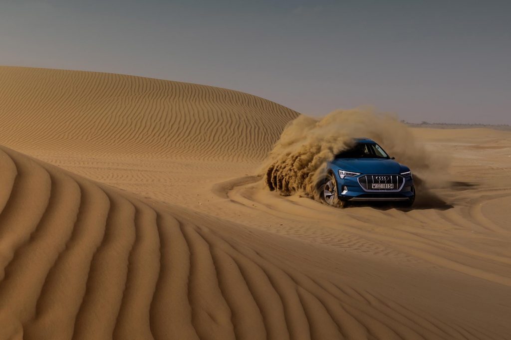 Az Audi első tisztán elektromos autója már önmagában is érdemes a figyelemre, de mintha ez nem lenne elég, a bemutatóját Abu-Dzabi környékén tartották, ahol igazán látványos képanyagot készítettek a 408 lóerős crossoverről.