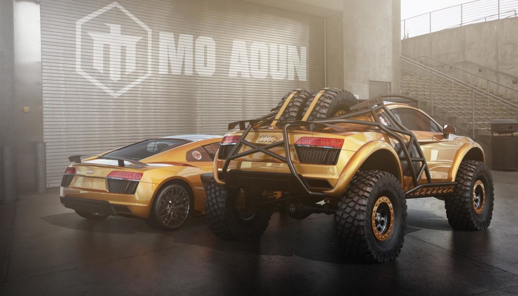 Az Audi R8 igazi vadállat a pályán, főleg a V10-es motorral szerelt legújabb széria, de ez a változata a terepjárástól sem ijedne meg. Minden megvan rajta, ami ahhoz kellene, hogy rajthoz álljon akár a Dakar-ralin is.
